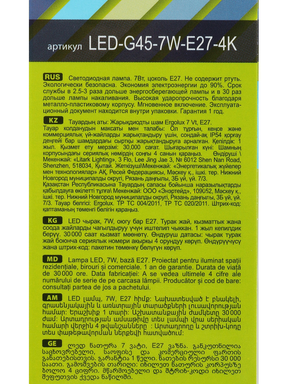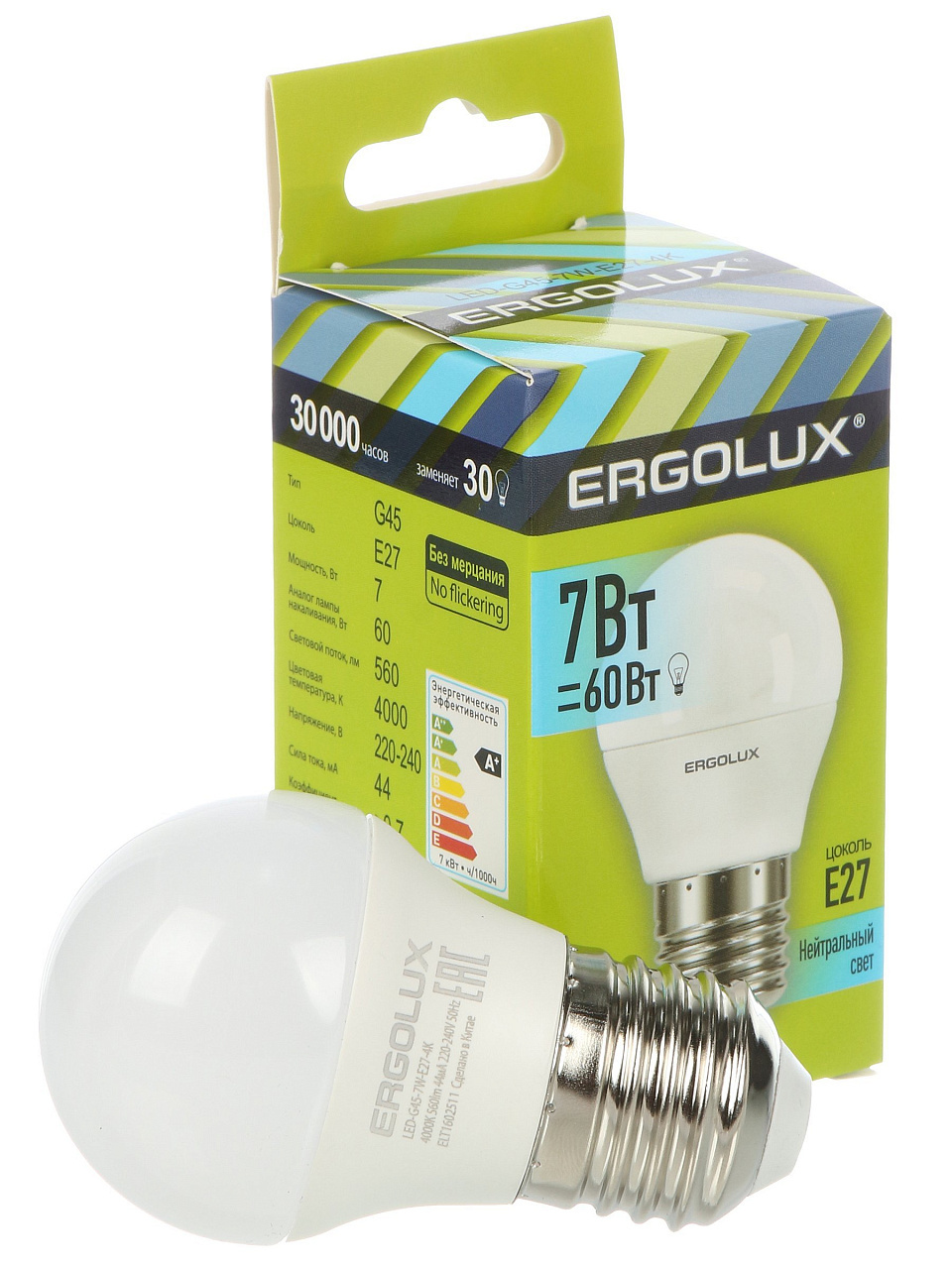 Вы можете приобрести «Лампа светодиодная E27, 7 Вт, 60 Вт, 220 В, шар, 4000 К, нейтральный белый свет, Ergolux, 12145» и другие товары в нашем интернет-магазине в Орле по низким ценам и с бесплатным самовывозом.