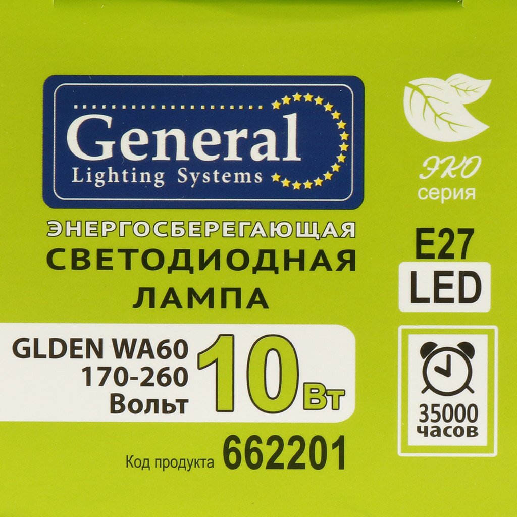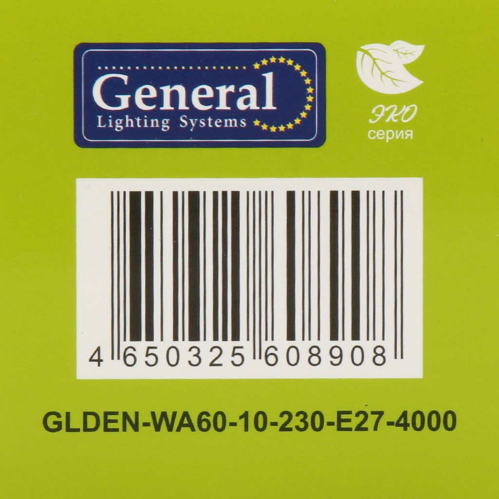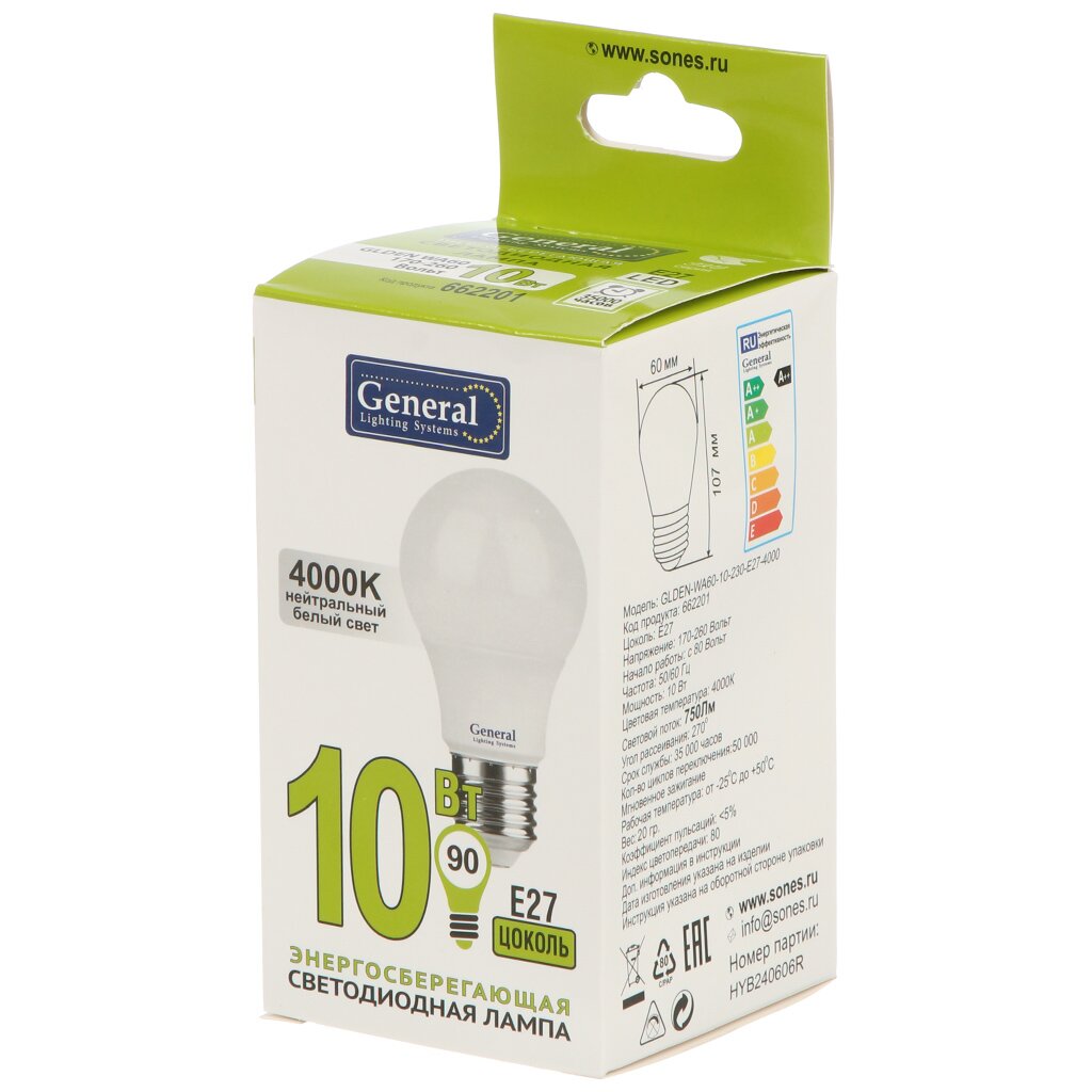 Вы можете приобрести «Лампа светодиодная E27, 10 Вт, 230 В, груша, 4000 К, нейтральный белый свет, General Lighting Systems, GLDEN, 662201» и другие товары в нашем интернет-магазине в Смоленске по низким ценам и с бесплатным самовывозом.