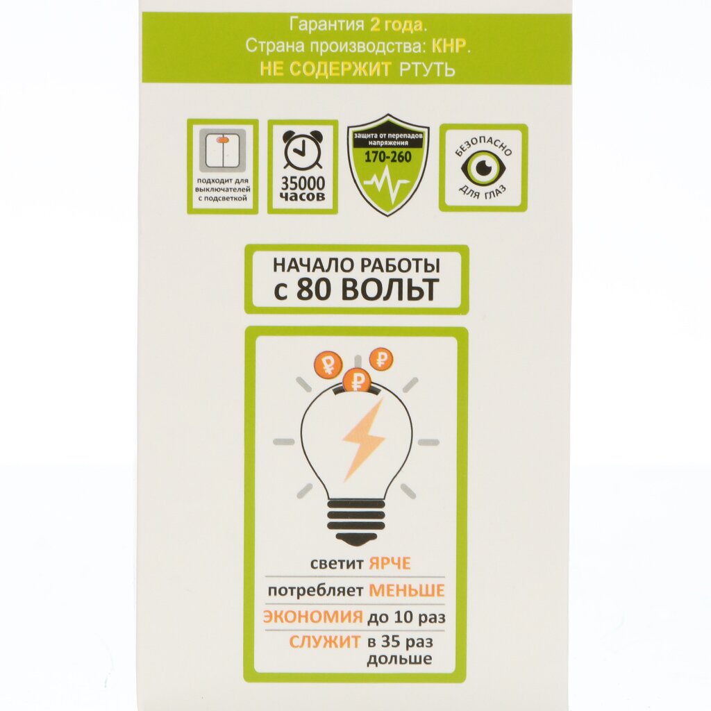 Экономия электроэнергии до 90%, долговечность, универсальность для разных типов светильников (люстра, настольная лампа, бра).