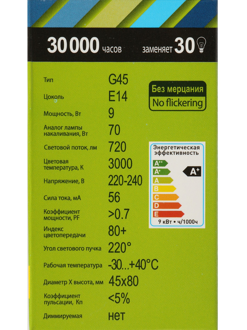 - Эквивалент лампы накаливания, Вт70 Вт