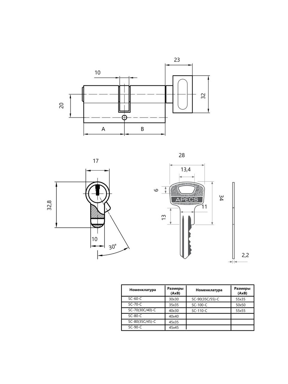 - Цилиндровые механизмы Apecs серии SC - одни из немногих существующих на рынке России цилиндров, которые прошли испытания и сертификацию в России. Серия SM предназначена для установки во входные двери и обеспечивает уровень защиты, соответствующий 2 классу (из 4 возможных) по российскому ГОСТу.