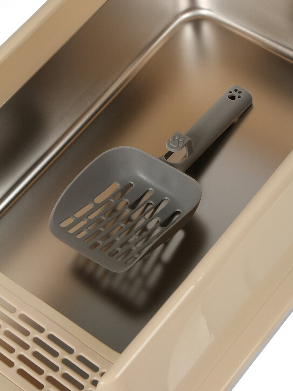 Лоток для кошачьего туалета 48.5 см Y4-11442 — компактное решение для чистоты дома: оптимальный размер, универсальный бежевый цвет, быстрая уборка без лишних усилий.