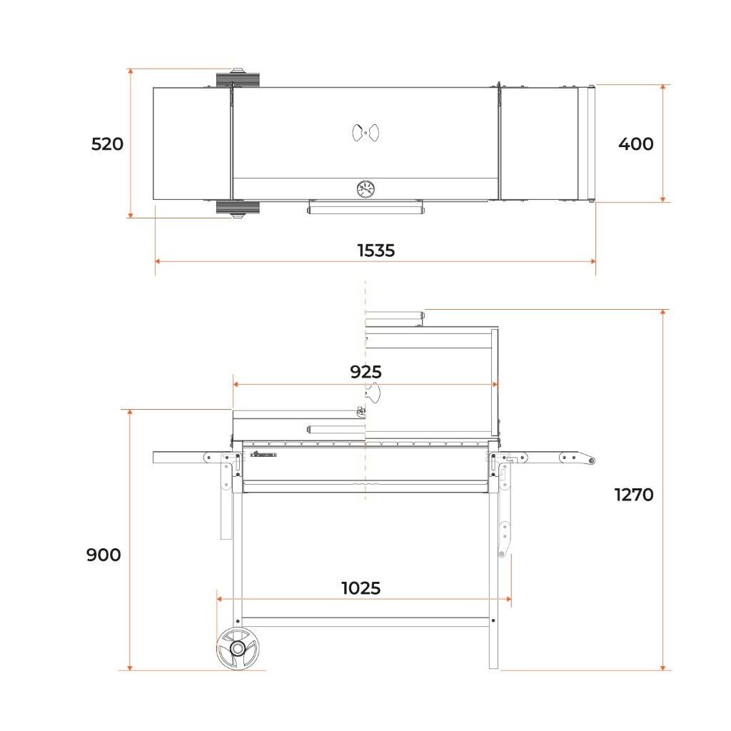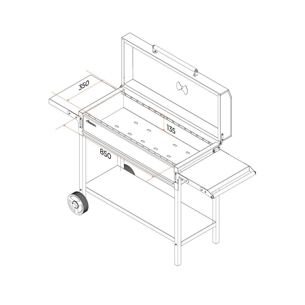 Топка длиной 85 см вмещает 15 шампуров, что позволяет одновременно приготовить 3.5 кг мяса.