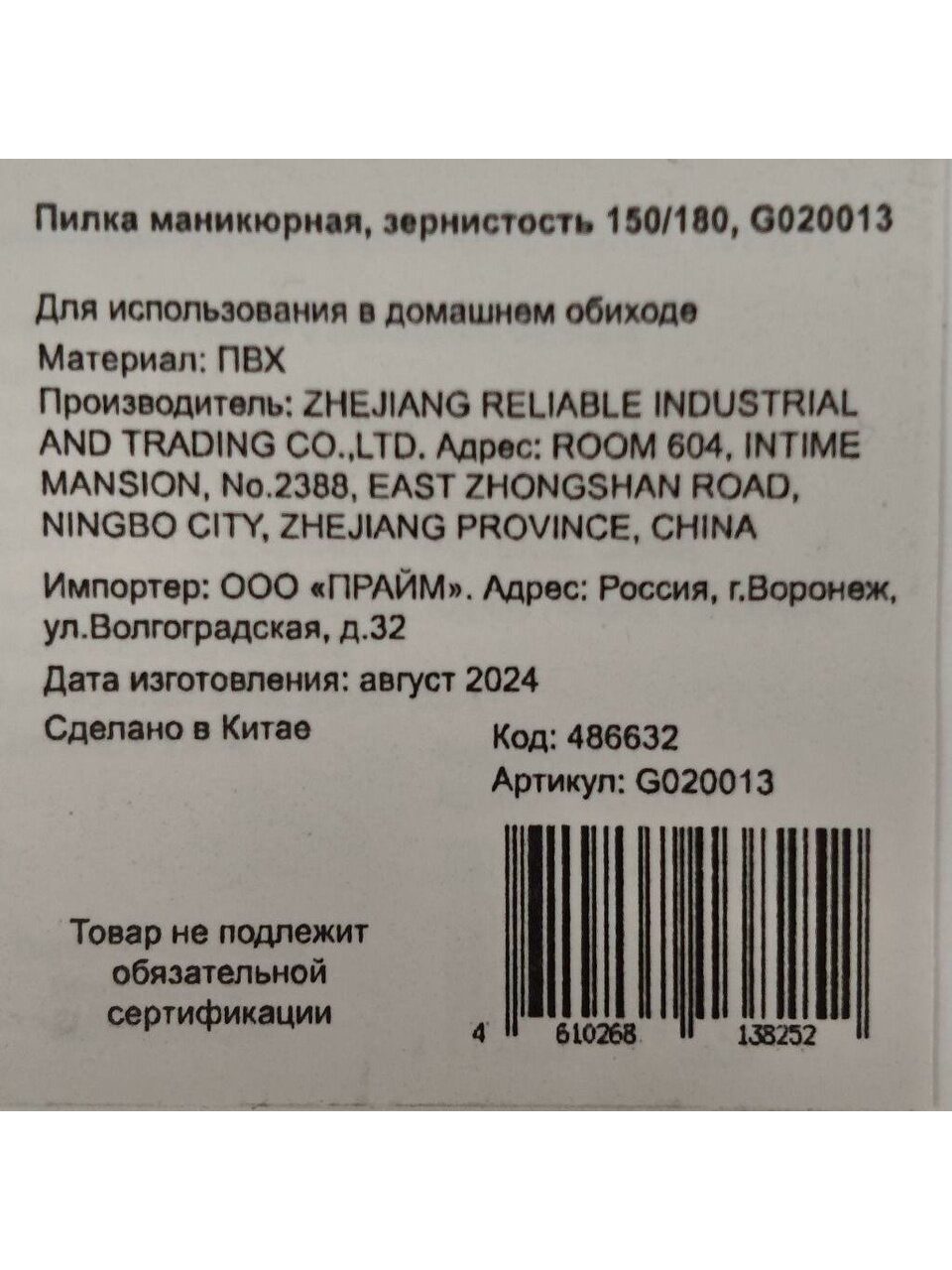 Вы можете приобрести «Пилка маникюрная зернистость 150/180, 2 шт, G020013» и другие товары в нашем интернет-магазине в Старом Осколе по низким ценам и с бесплатным самовывозом.
