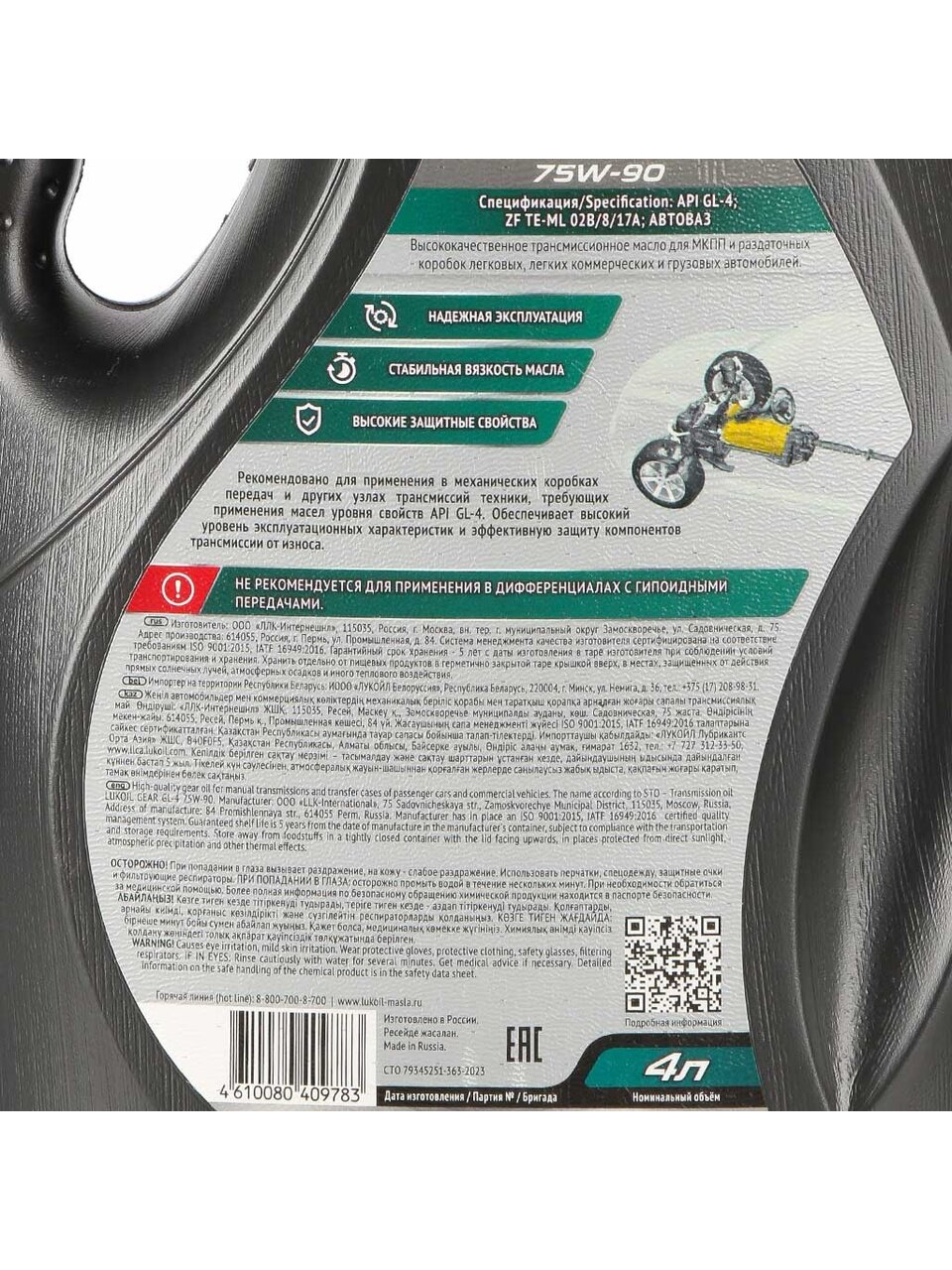 Масло трансмиссионное полусинтетическое 75W90 Лукойл GEAR GL-4 — оптимальное решение для защиты КПП и редукторов, увеличьте срок службы трансмиссии без переплат.