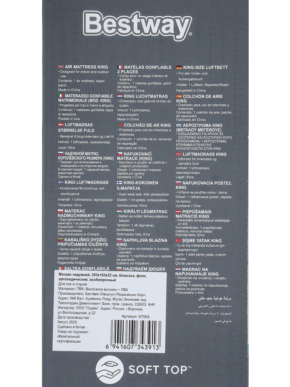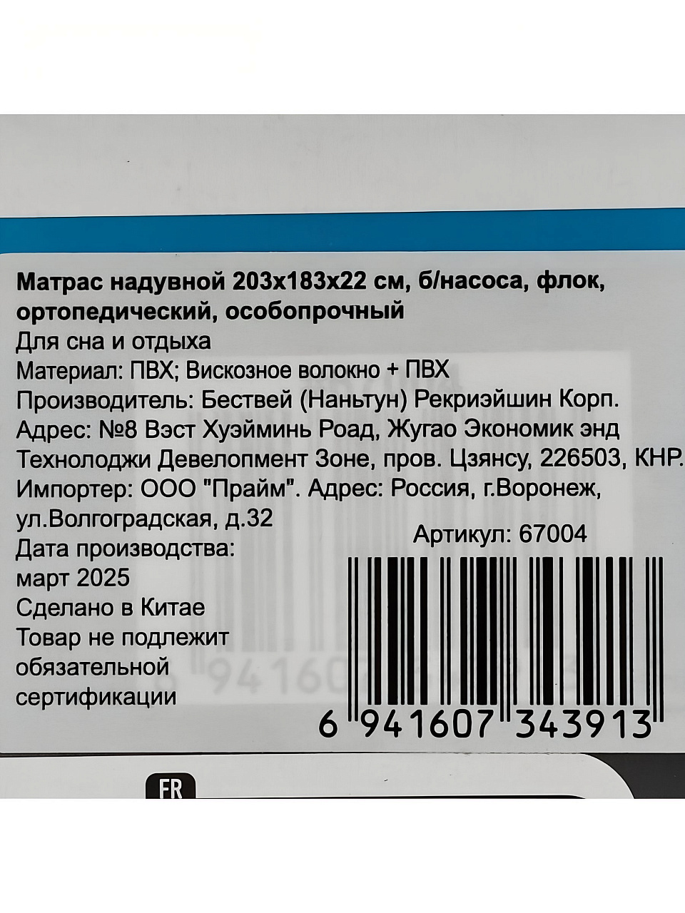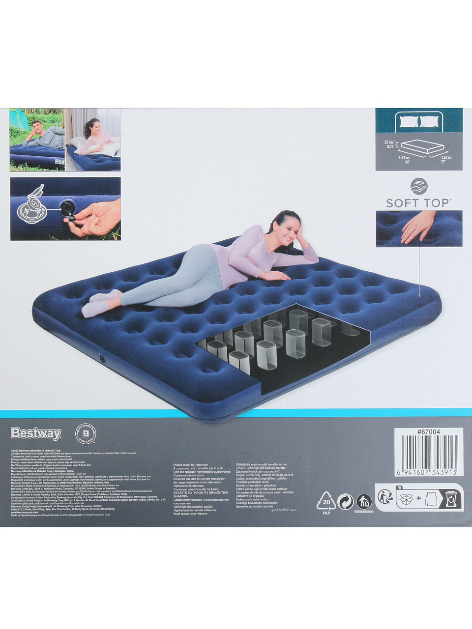 Вы можете приобрести «Матрас надувной Bestway, 203х183х22 см, 67004/030443BW, без насоса, флокированный, ортопедический, особопрочный, 300 кг» и другие товары в нашем интернет-магазине в Старом Осколе по низким ценам и с бесплатным самовывозом.