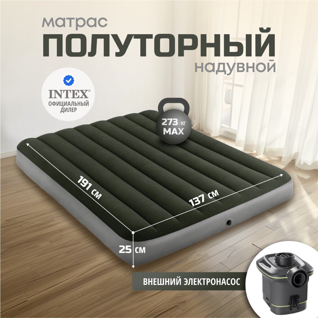 Вы можете приобрести «Матрас надувной Intex, 191х137х25 см, 64778, насос внешний, на батарейках, флокированный, 273 кг» и другие товары в нашем интернет-магазине в Твери по низким ценам и с бесплатным самовывозом.