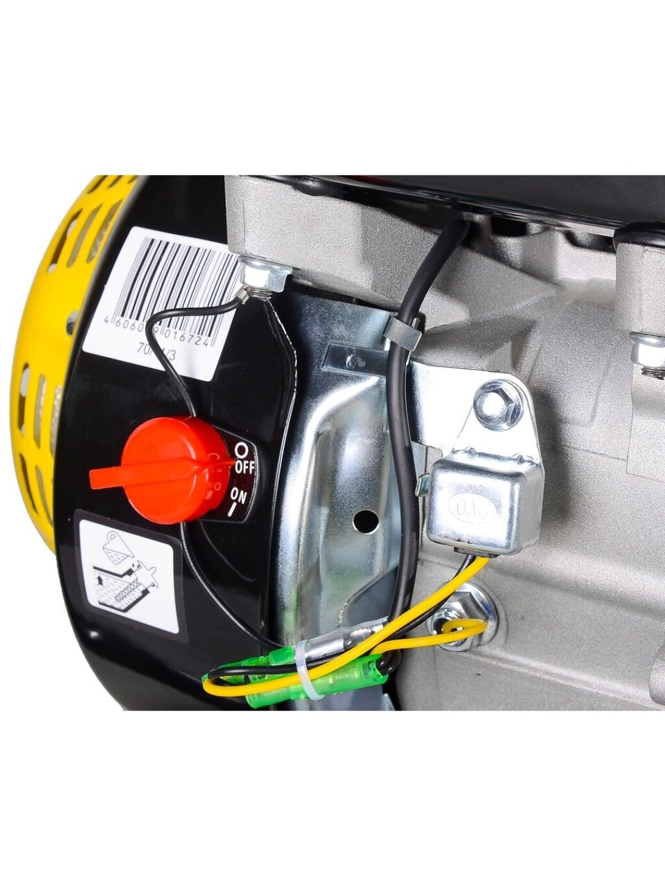 Двигатель в данном случае одноцилиндровый четырехтактный. Верхнеклапанная компоновка обеспечивает его повышенную эффективность и увеличенный рабочий ресурс. Модель содержит топливный бак вместительностью 3.6 литра, что в совокупности с экономным расходованием бензина, обеспечивает продолжительную непрерывную работу агрегата. Запуск двигателя осуществляется ручным стартером и не представляется сложным.