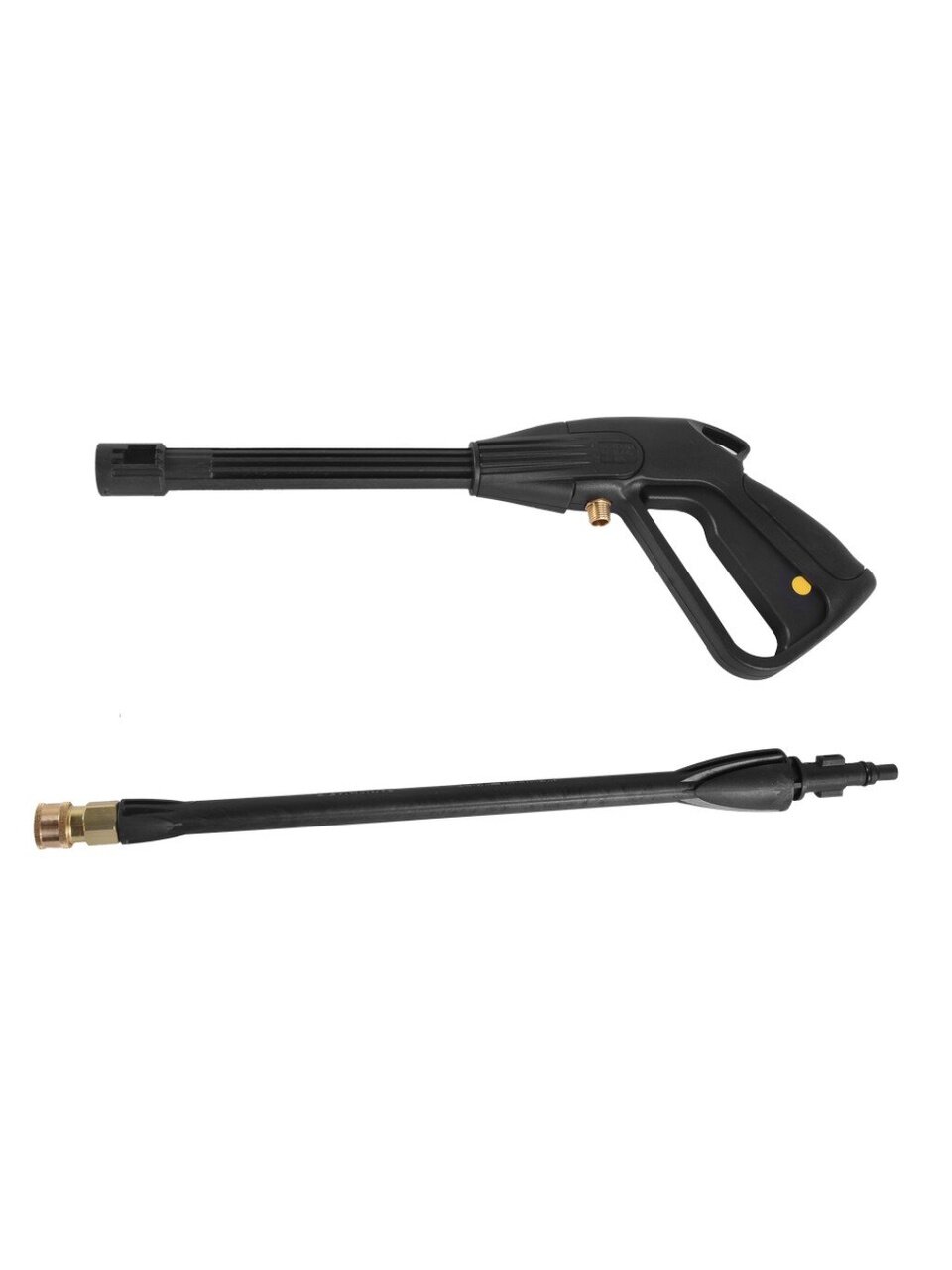 Мойка высокого давления оснащена металлической помпой поршневого типа, приводимой в действие мощным (1650 Вт) электромотором с воздушным охлаждением, питающимся от бытовой электросети (220 В/ 50 Гц). Это позволяет создать струю воды с давлением от 90 до 135 атмосфер. При этом помпа способна за час прокачать через себя до 360 литров воды. Для формирования рабочей струи агрегат имеет специальный водяной пистолет с курком, управляющим клапаном подачи воды, а так же удлинитель с форсункой на конце.