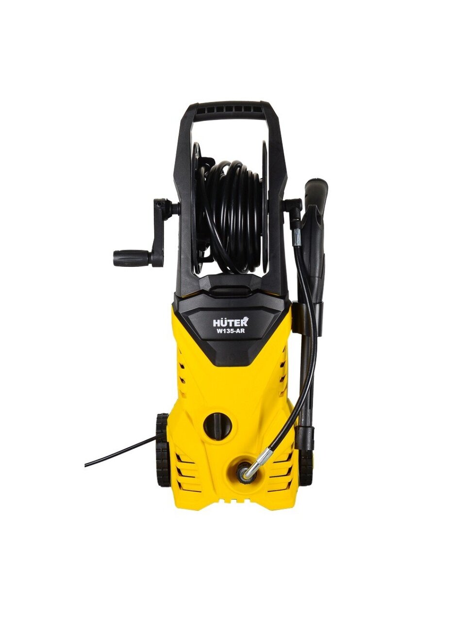 - В конструкцию корпуса мойки высокого давления Huter W135-AR интегрирован специальный барабан, содержащий намотанный на него выходной шланг высокого давления. Это повышает удобство конструкции во всех отношениях.