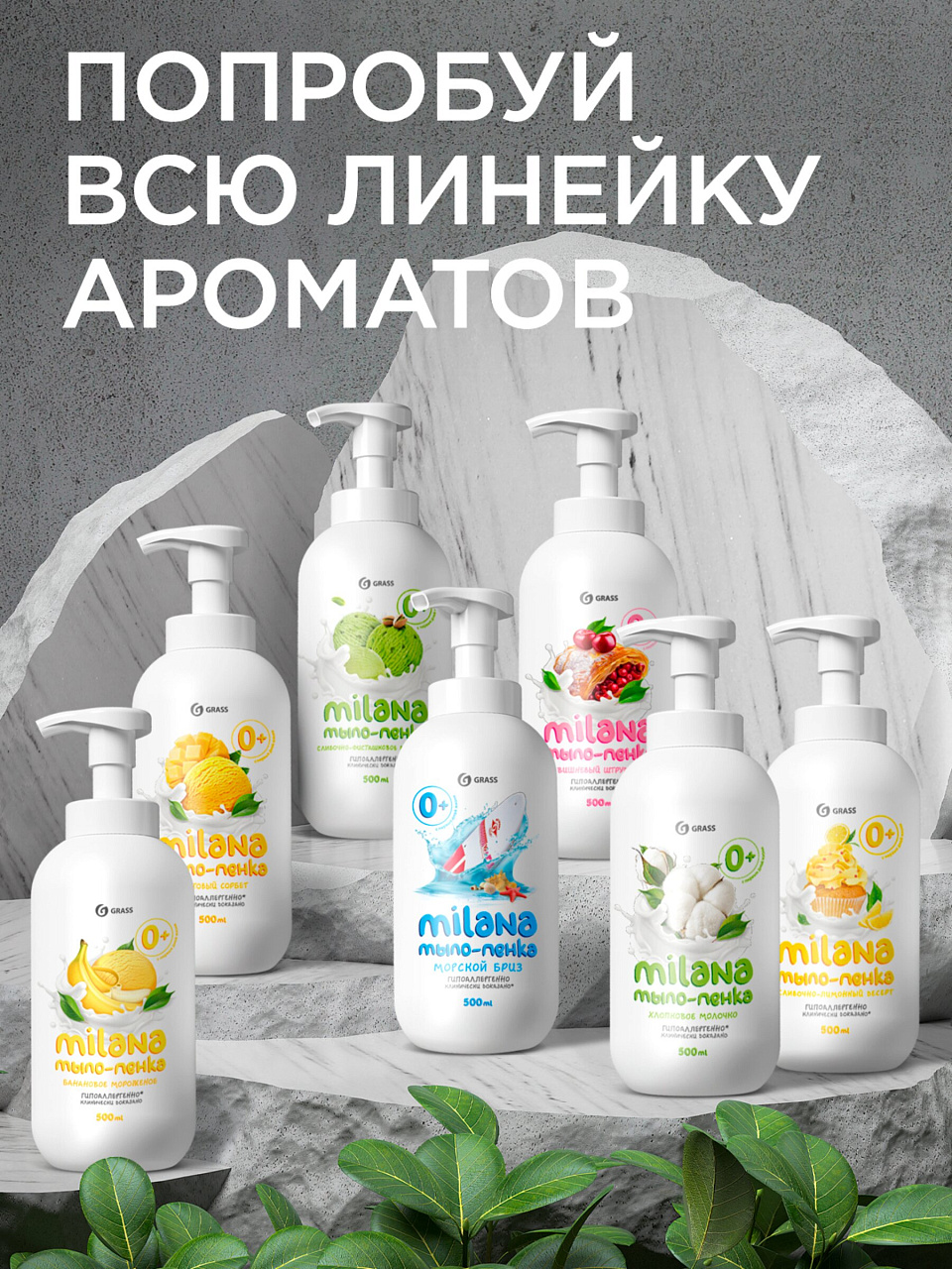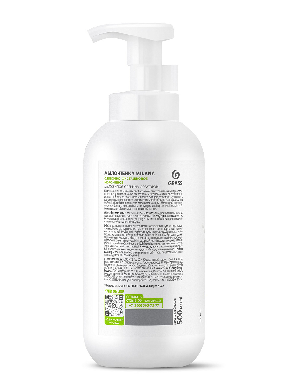Мыло-пенка жидкое Grass, Milana Сливочно-фисташковое мороженое, 500 мл