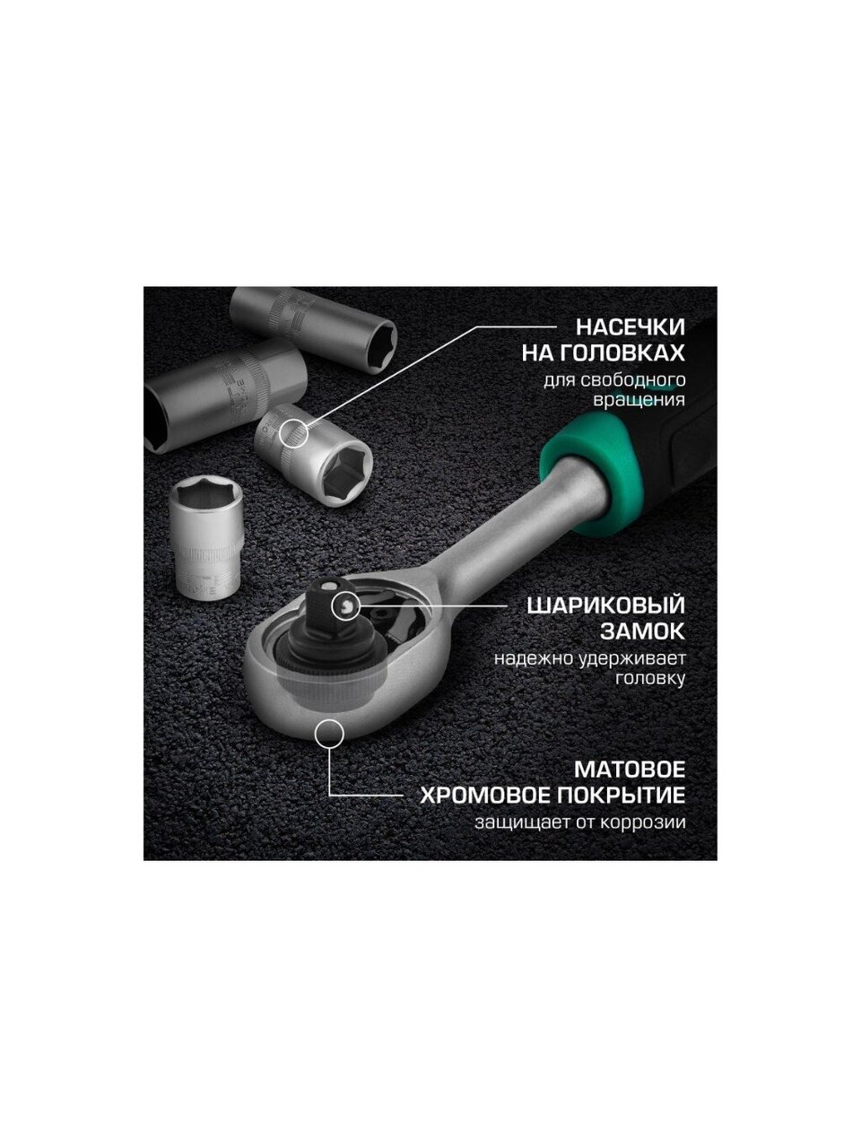 - Комбинированные ключи и головки изготовлены из хромованадиевой стали, которая обеспечивает твердость и прочность инструментов.