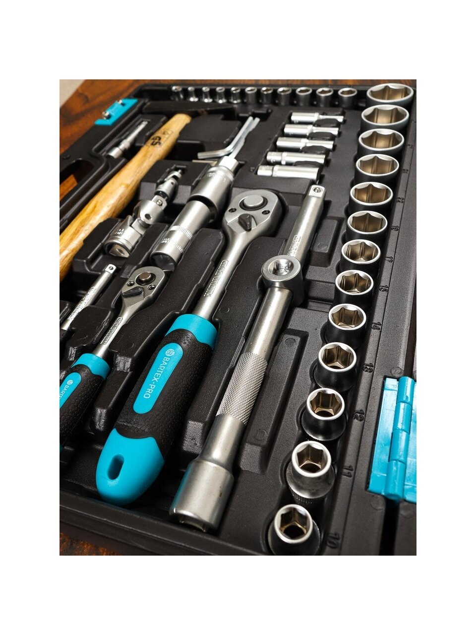 Набор инструментов Bartex выполнен из высококачественной хромованадиевой стали. Сильными сторонами этого материала являются высокая стойкость к ударным нагрузкам и коррозии. Инструменты помещены в прочный и стильный кейс, который удобно брать с собой.