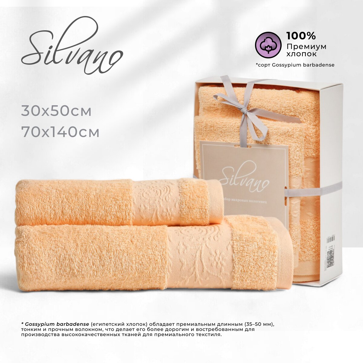 Набор полотенец 2 шт, 30х50, 70х140 см, 100% хлопок, 420 г/м2, Silvano, Аврора, персик, Узбекистан