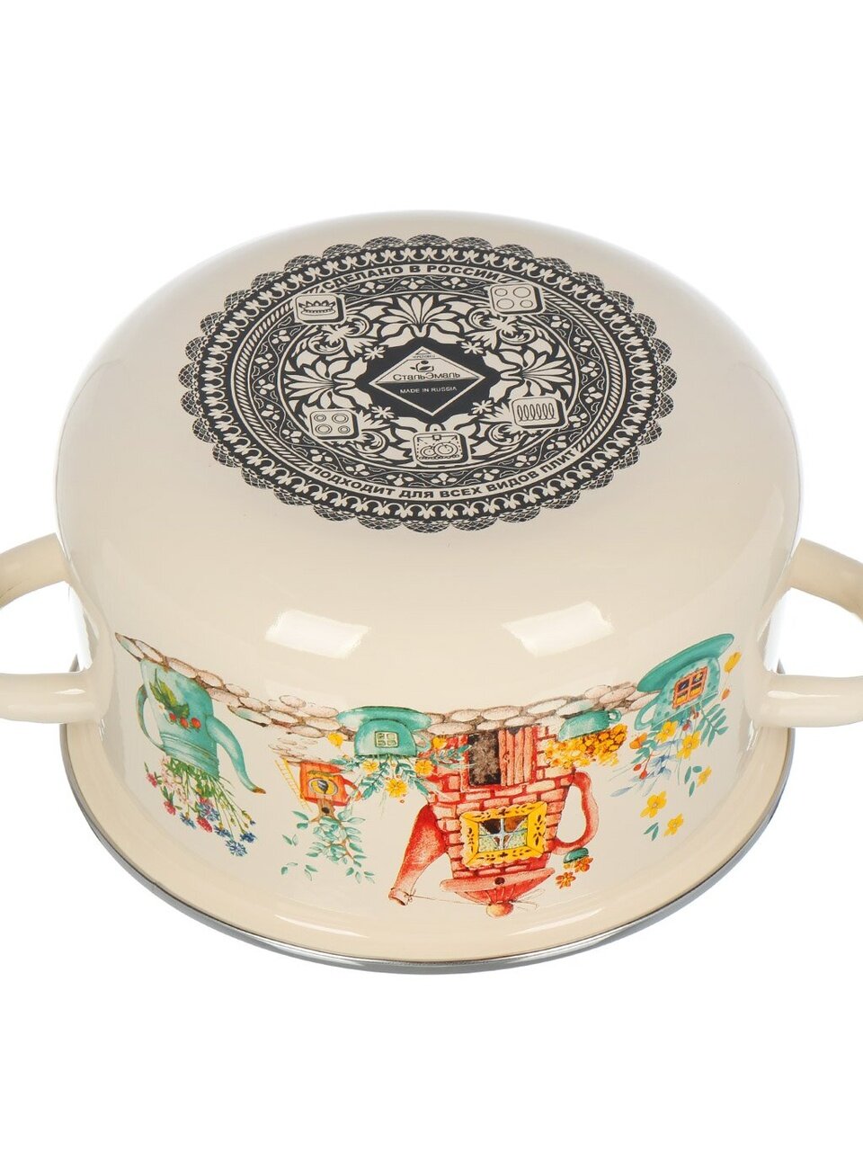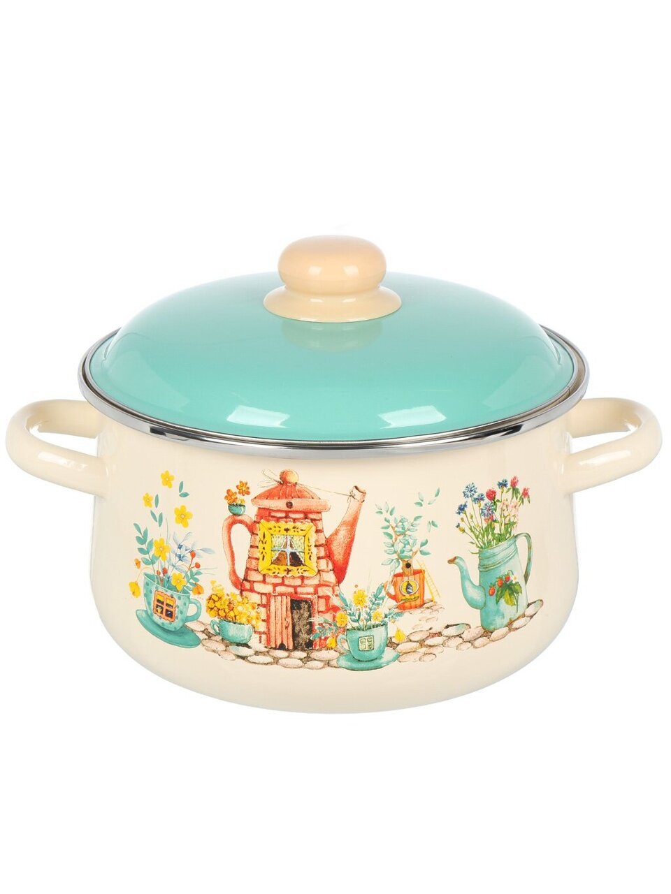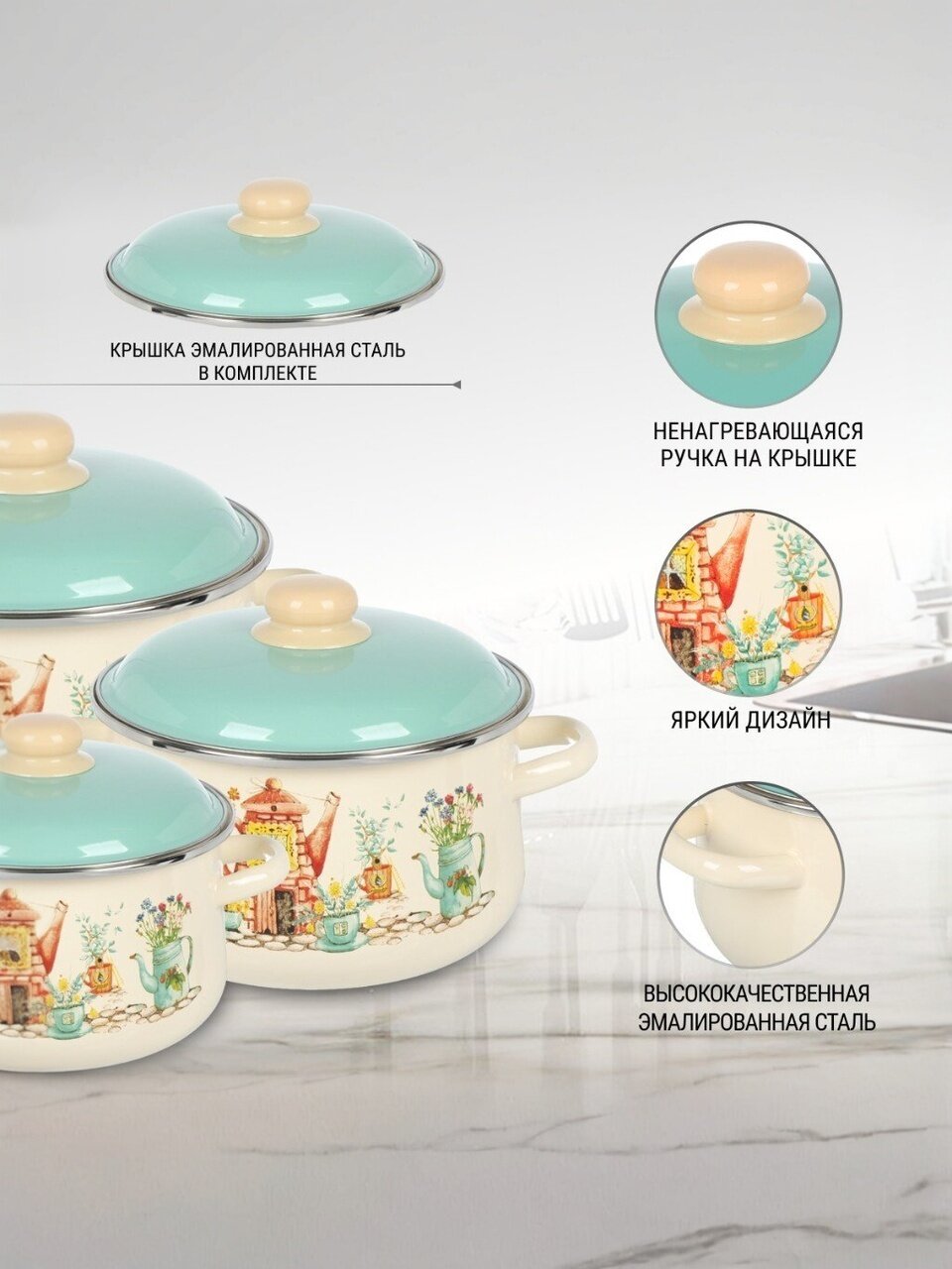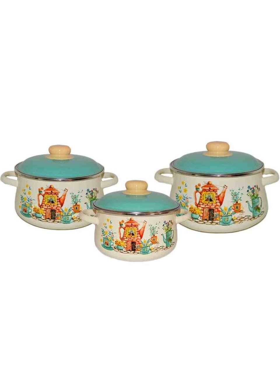 Эмалированный набор кастрюль 3-в-1 «Чайный домик» 2, 4 и 5.5 л для индукции – стильное решение для кухни и дачи, долговечность и универсальность по выгодной цене.