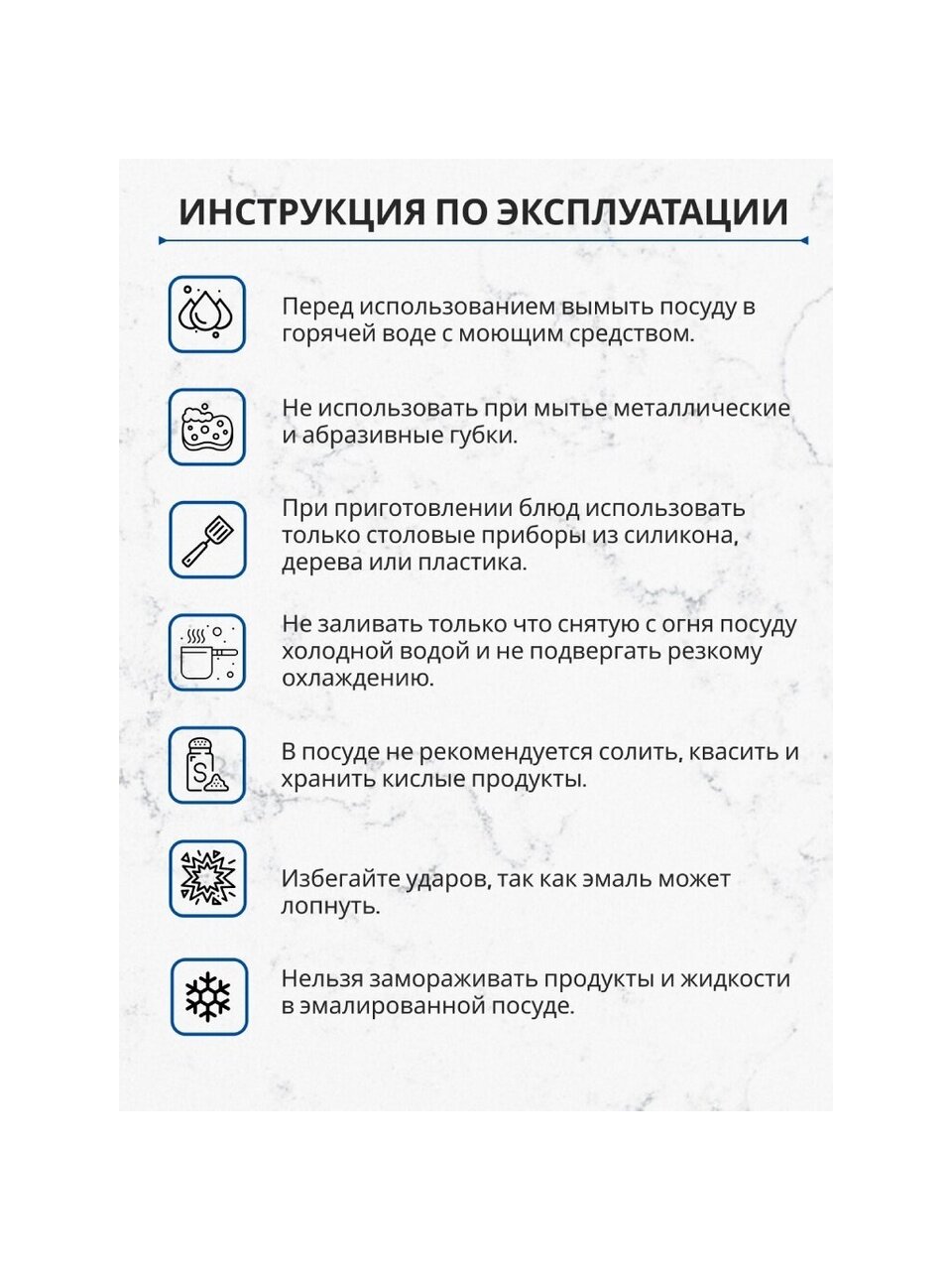 Эмалированная сталь не окисляется, не впитывает запахи, устойчива к царапинам и легко очищается. Подходит для хранения и приготовления любых продуктов.