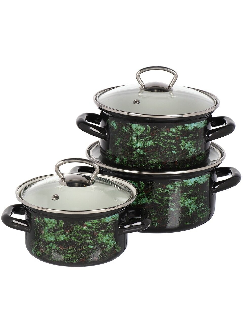 Набор эмалированных кастрюль 3 шт. «Малахит-1-Экстра стиль» — выбор для дома и дачи: долговечность, универсальность, стильный черный дизайн по доступной цене.