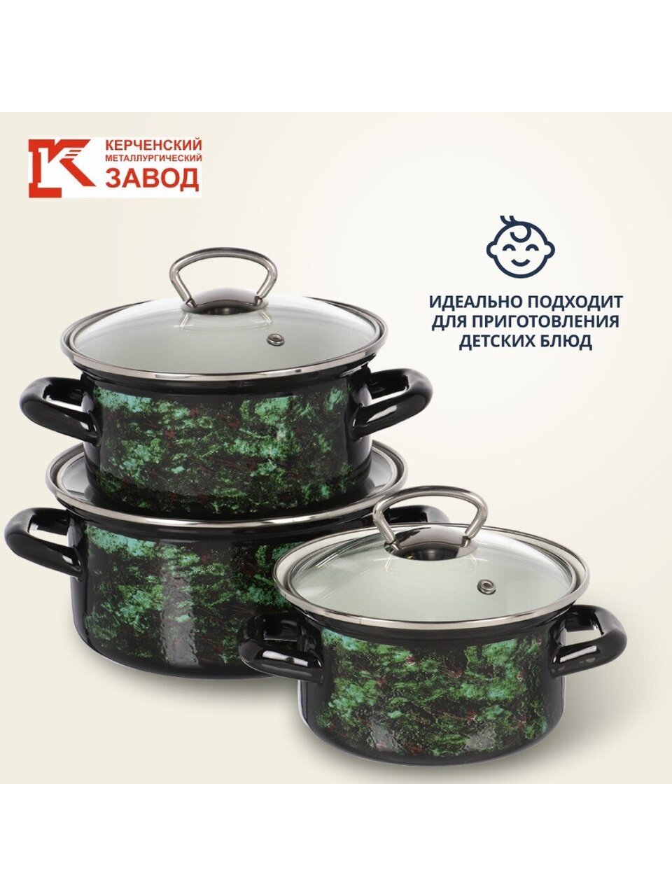 Вы можете приобрести «Набор посуды эмалированная сталь, 3 предмета, кастрюли 1.0, 1.5, 2.3 л., МП, Керченский металлургический завод, Малахит-1-Экстра стиль, черный» и другие товары в нашем интернет-магазине в Ярославле по низким ценам и с бесплатным самовывозом.