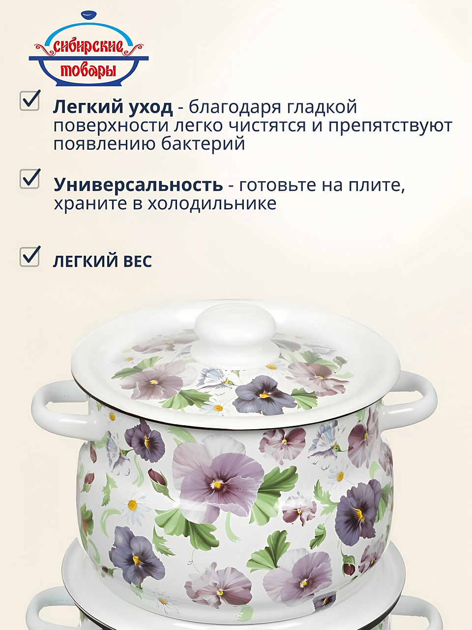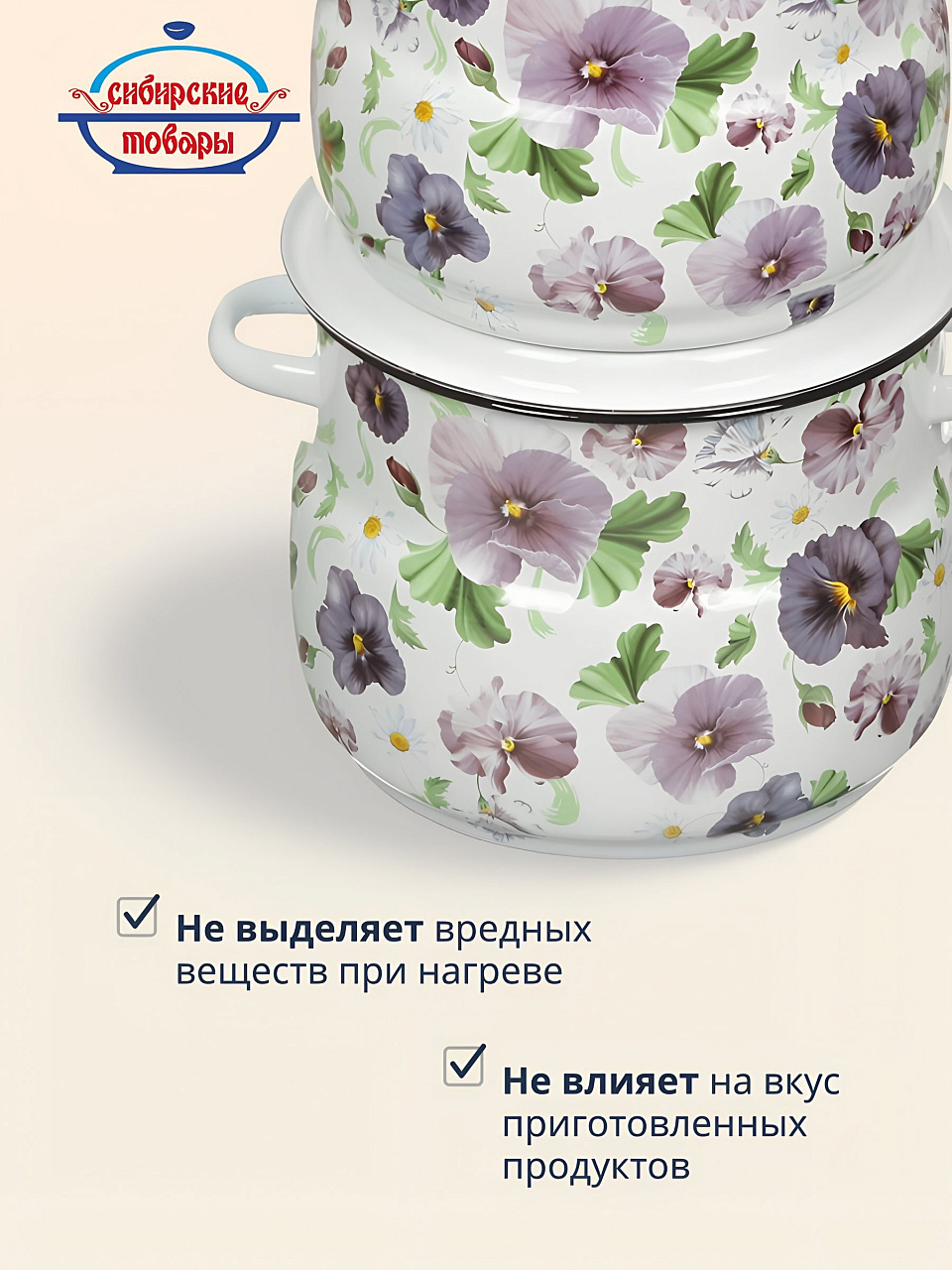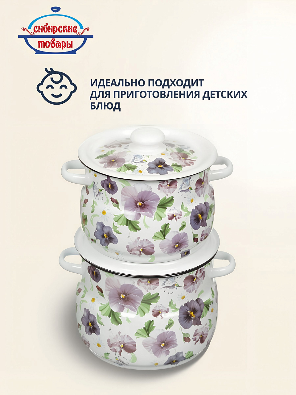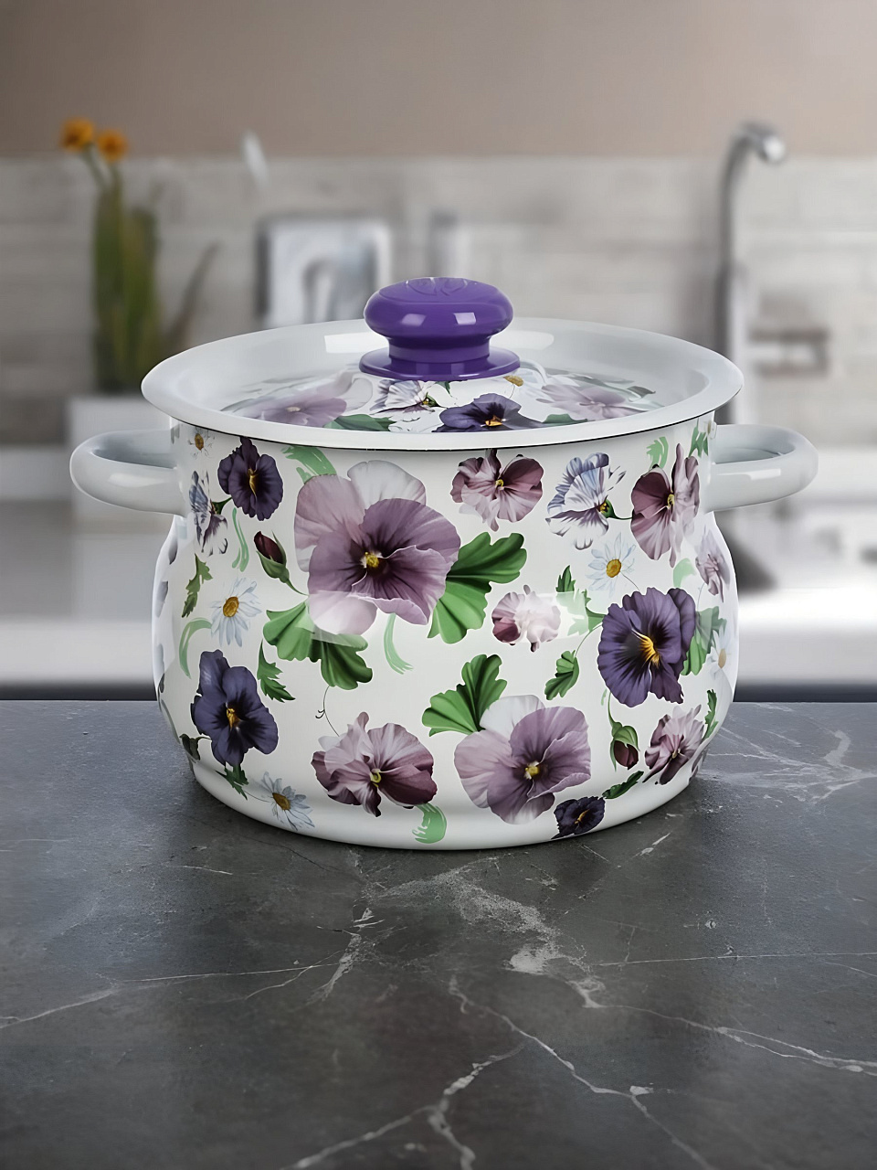 Набор эмалированных кастрюль 4 и 5,5 л «Анютины глазки 10» — практичное решение для дома и дачи: долговечная сталь, яркий дизайн, выгодная цена.