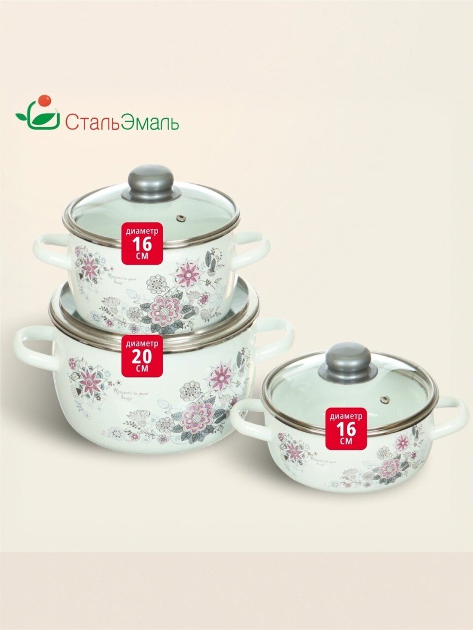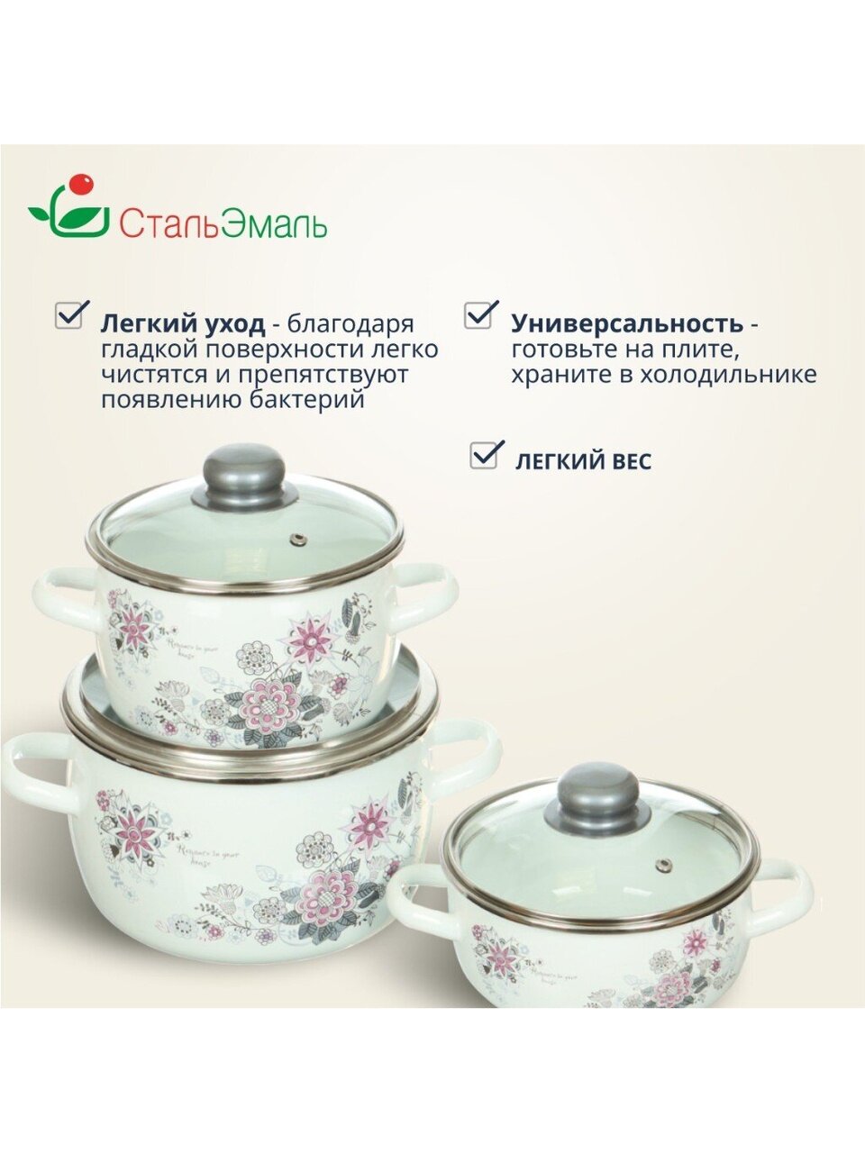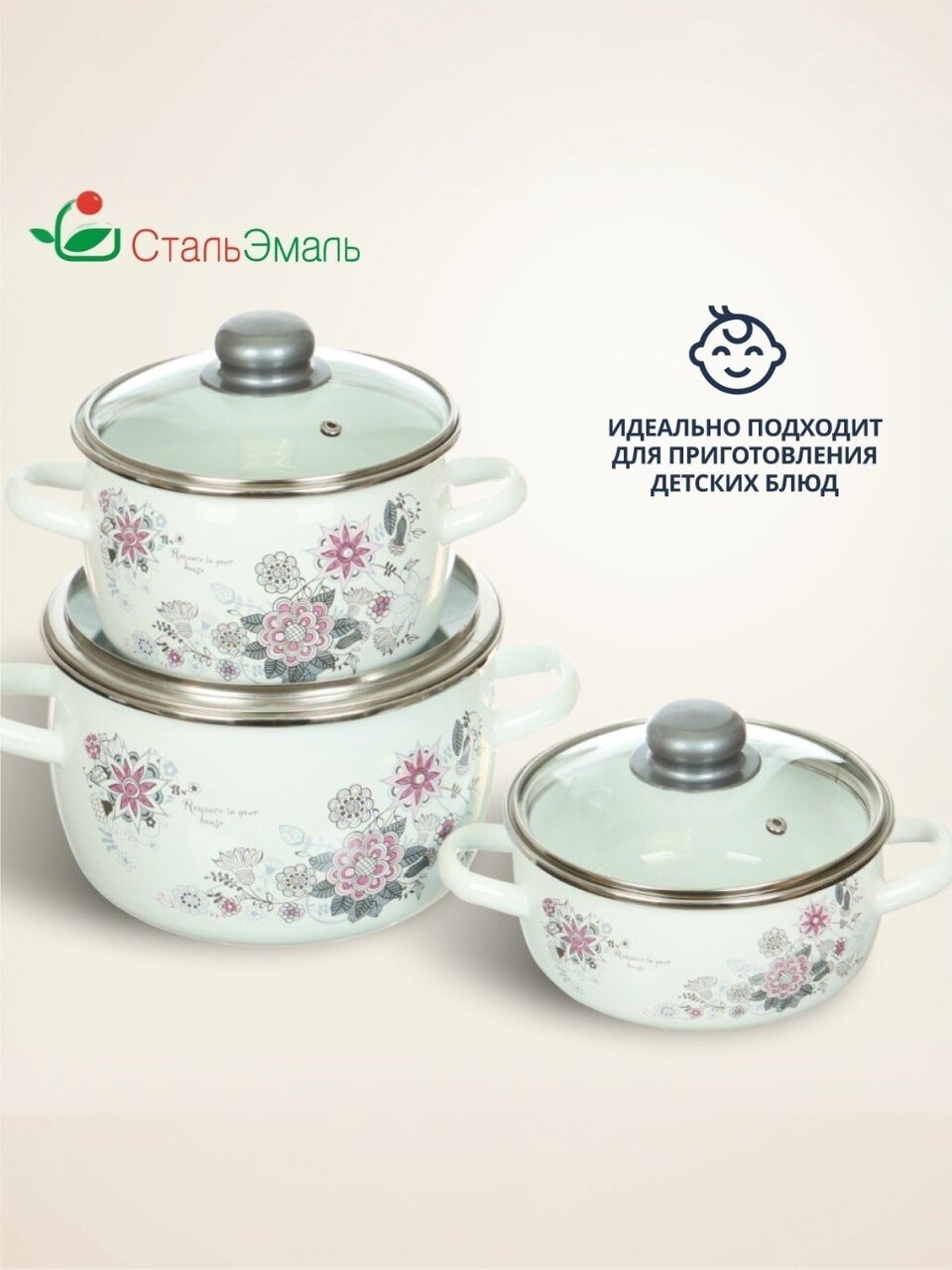 Набор эмалированной посуды СтальЭмаль Весенний романс 3 предмета: универсальный выбор для индукции, дачи и подарка — выгодно купить онлайн.