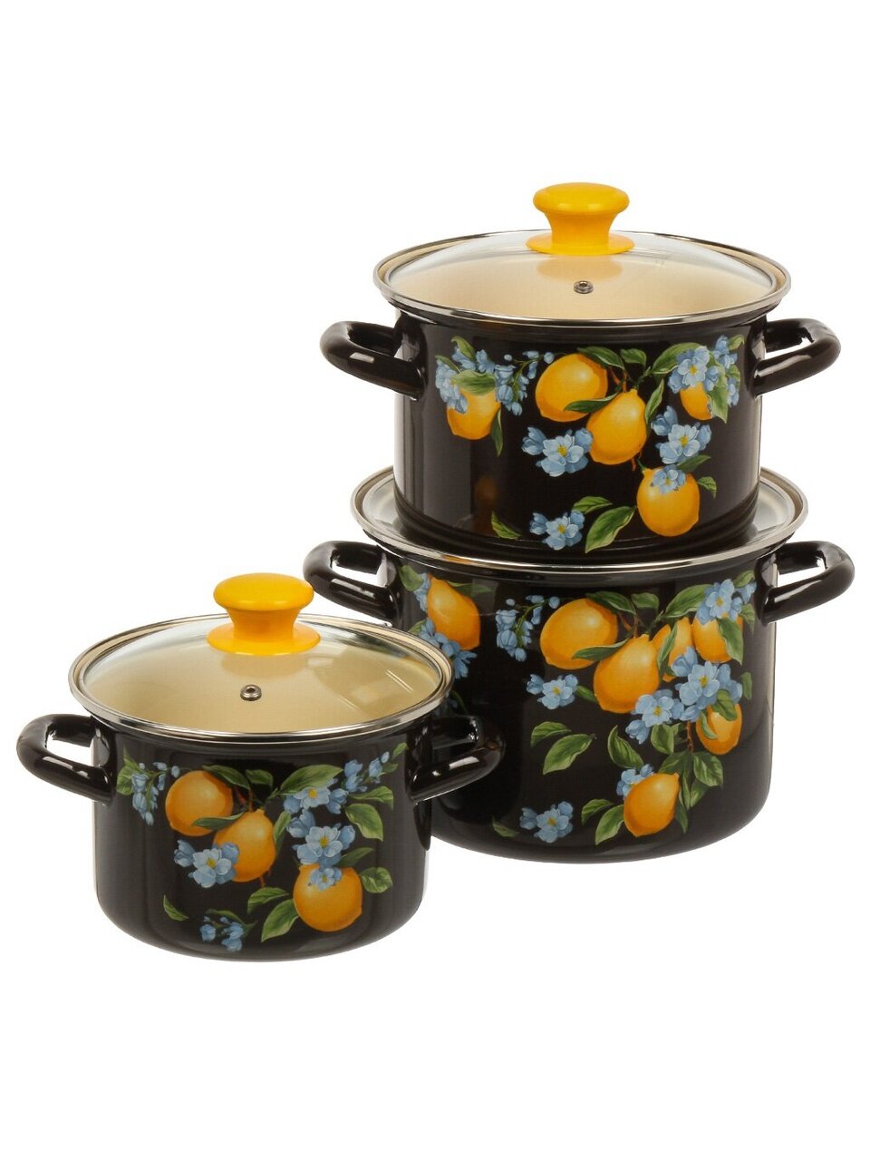 Набор эмалированной посуды 3 предмета «Яркие лимоны-5-1-Люкс»: идеальное решение для кухни, дачи и подарка. Долговечность, стиль и универсальность по выгодной цене.