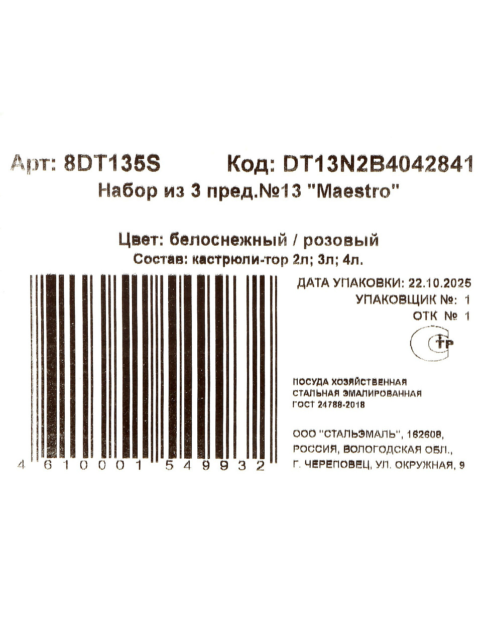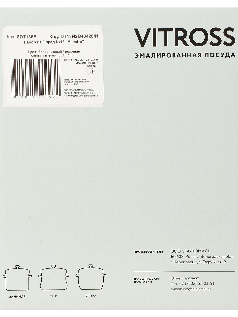 Набор посуды эмалированная сталь, 3 предмета, кастрюли 2, 3, 4 л, индукция, СтальЭмаль, Maestro, 8DT135S