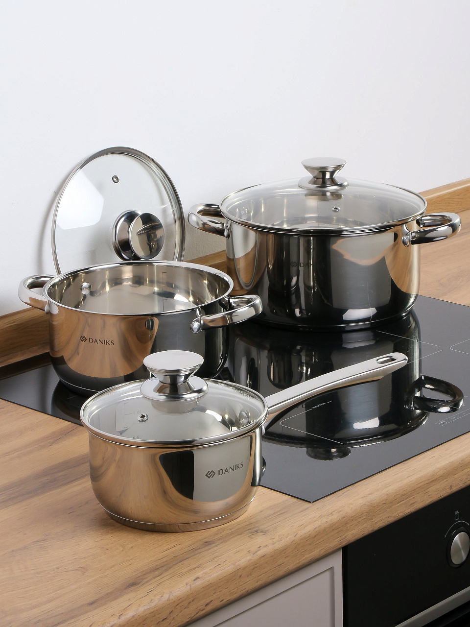 Набор посуды Daniks Оптима из нержавеющей стали на 6 предметов: универсальный выбор для индукции и любых плит, долговечность, выгодная цена.
