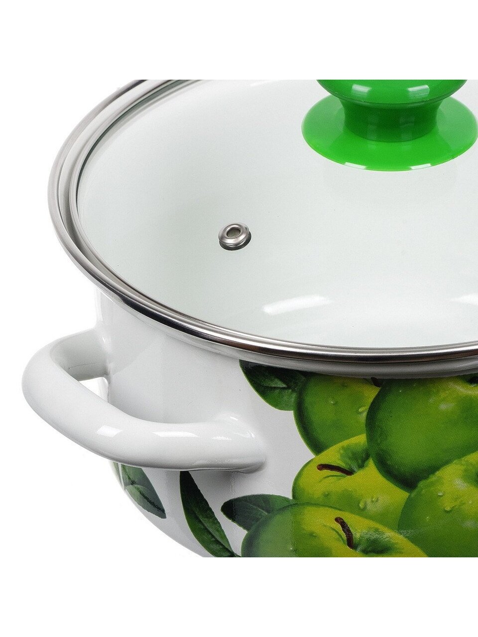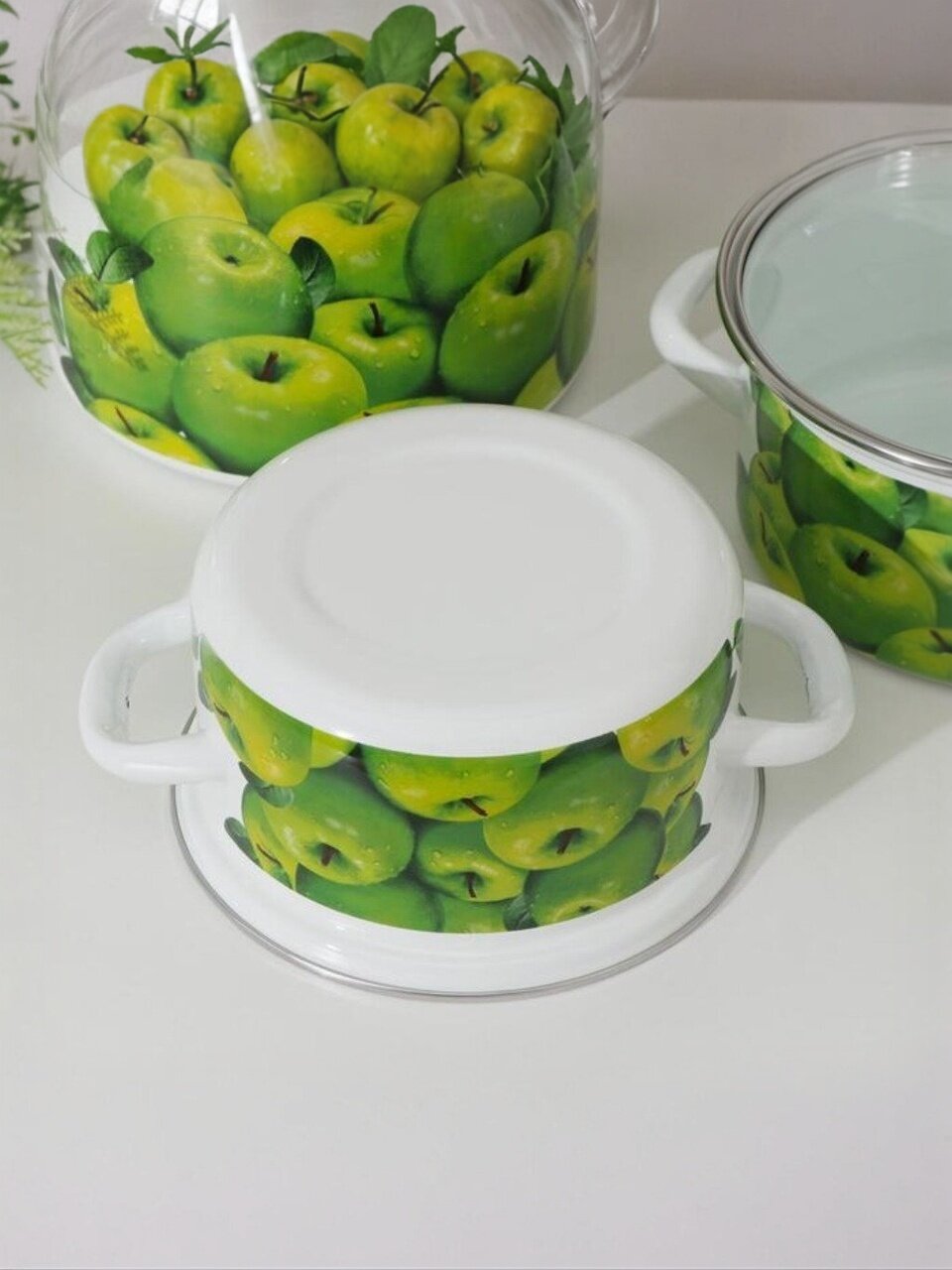 - Эмалированная сталь с рисунком «Поздние яблоки» — устойчивость к царапинам, безопасное хранение и готовка без посторонних запахов