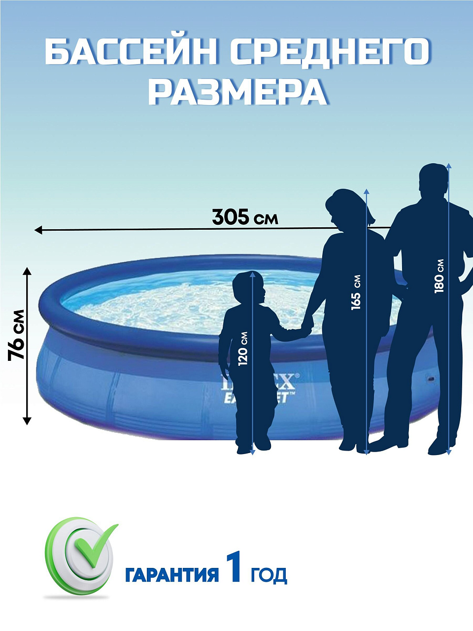 Вы можете приобрести «Бассейн надувной Intex, 305х76 см, Easy Set, 28122NP, фильтр-насос, 3853 л» и другие товары в нашем интернет-магазине в Липецке по низким ценам и с бесплатным самовывозом.