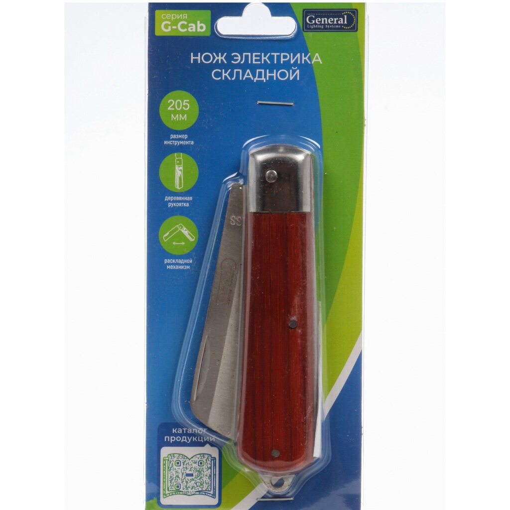 Вы можете приобрести «Нож монтерский, диэлектрический, 205 мм, выдвижное, трапециевидное лезвие, 1 шт, 82 мм, рукоятка дерево, складной, General Lighting Systems, G-Cab, 901111» и другие товары в нашем интернет-магазине в Россоши по низким ценам и с бесплатным самовывозом.