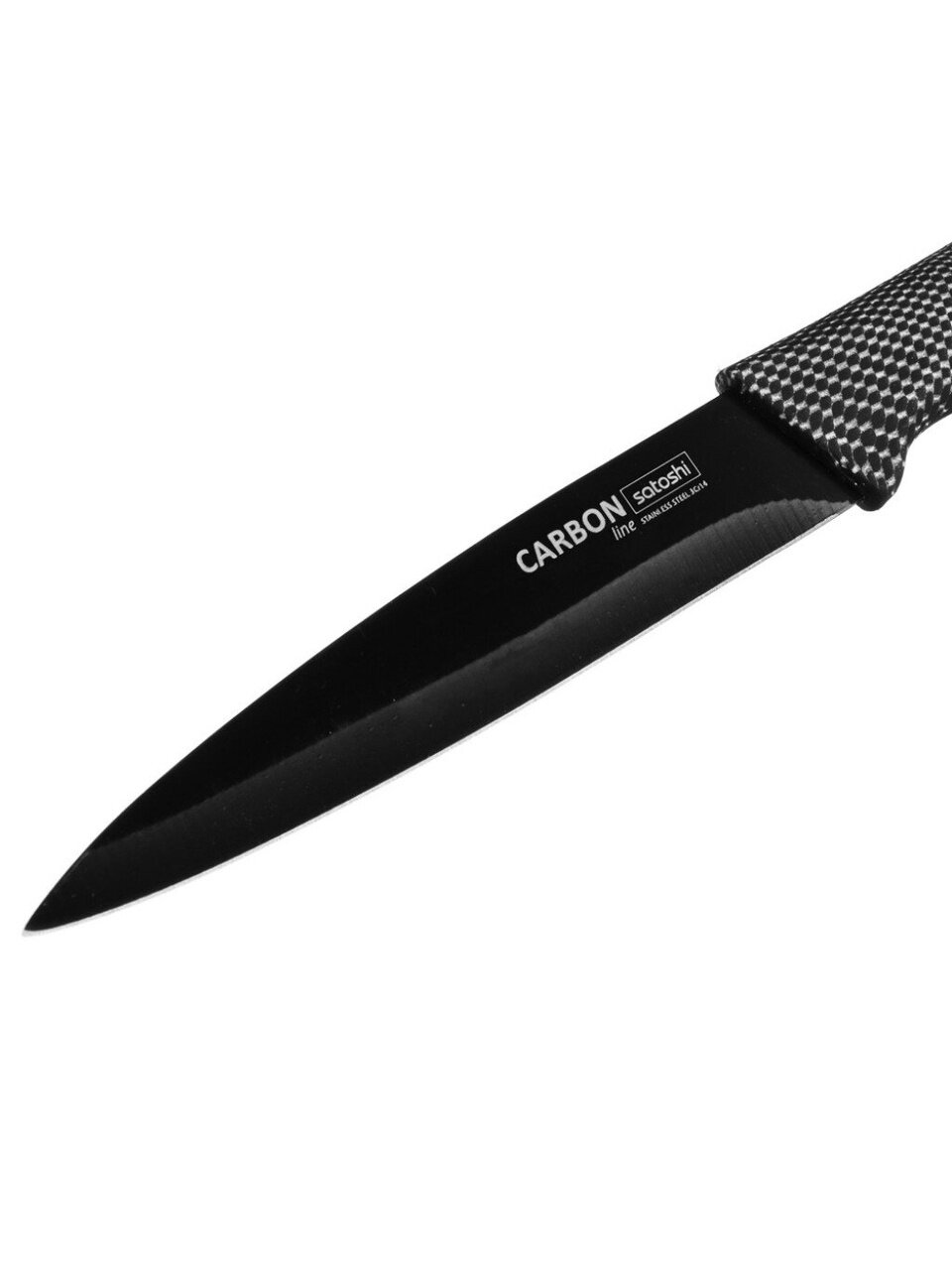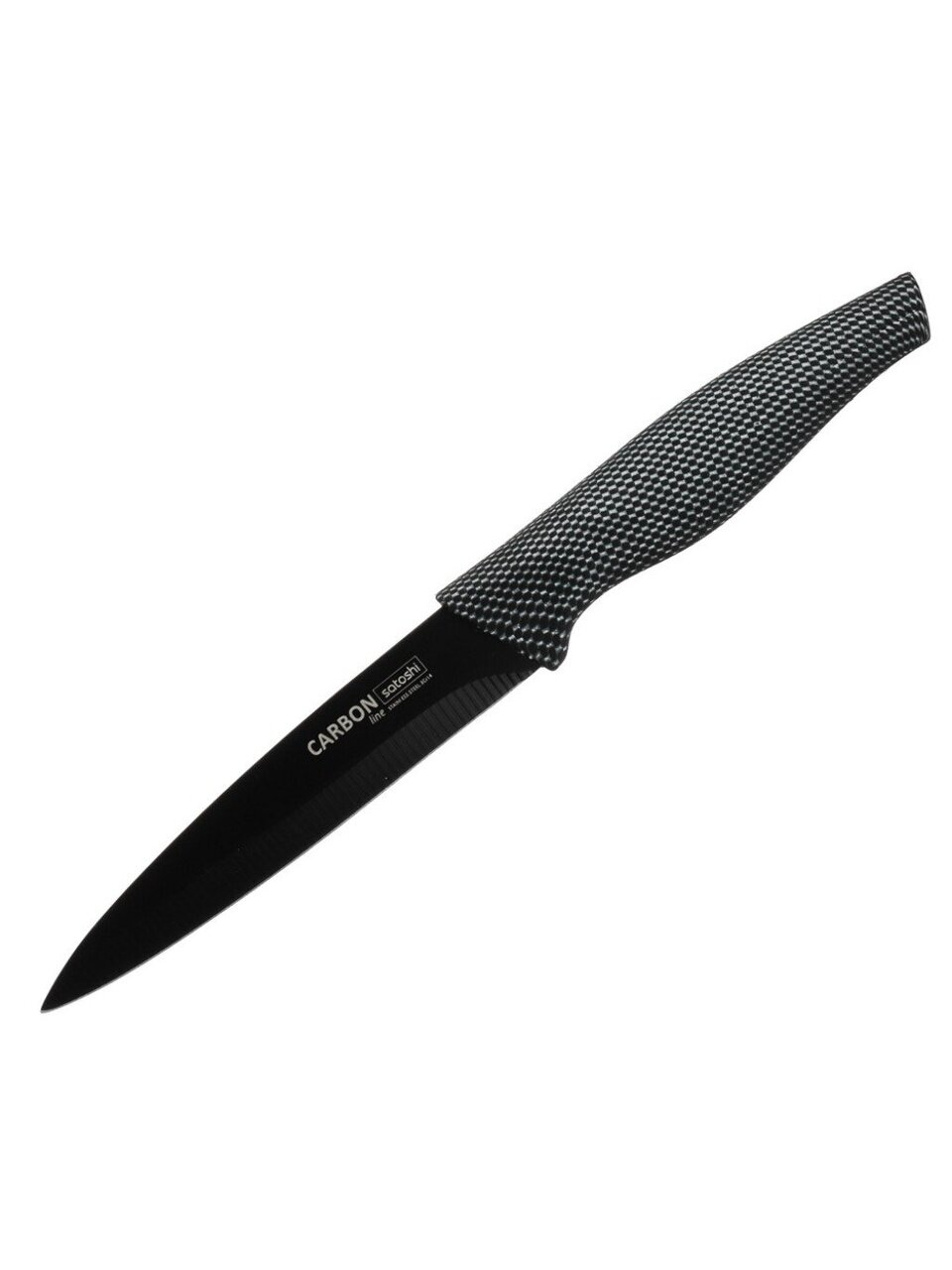 Универсальный кухонный нож Satoshi Carbon 12,7 см — точность реза, долговечность и комфорт для дома и дачи. Легко выбрать, если цените качество и стиль.