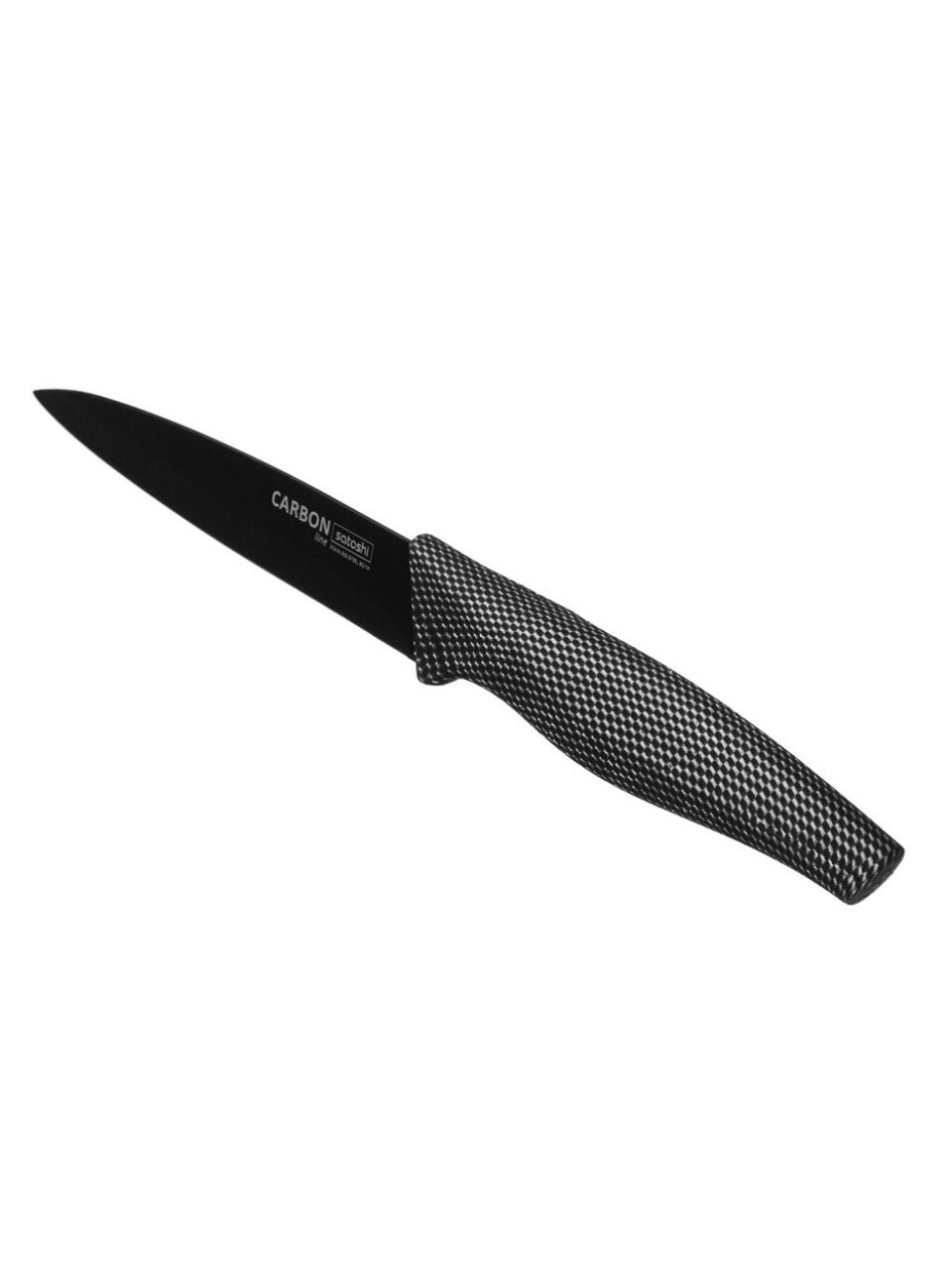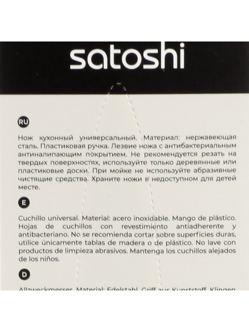Кухонный нож Satoshi Carbon универсальный — это оптимальный выбор для тех, кто ищет баланс между ценой и качеством. Лезвие из нержавеющей стали устойчиво к коррозии и долго сохраняет остроту даже при частом использовании. Благодаря длине 12,7 см нож удобно использовать для нарезки овощей, фруктов, рыбы и мяса, а пластиковая рукоять обеспечивает надежный хват и легкость ухода.