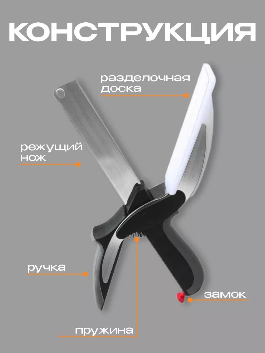 - Для удобства эксплуатации на одном из лезвий ножниц расположена белая насадка (не съемная), которая выполняет роль разделочной доски. Благодаря ей представленными ножницами возможно пользоваться без поиска дополнительной поверхности.