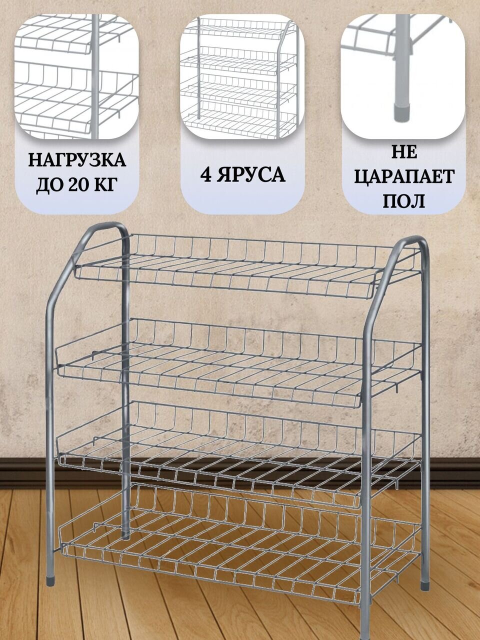 Вы можете приобрести «Полка для обуви, металл, 4 секции, 66х28х70 см, разборная, матовый серый, Nika, ЭТ1/МС» и другие товары в нашем интернет-магазине в Клинцах по низким ценам и с бесплатным самовывозом.