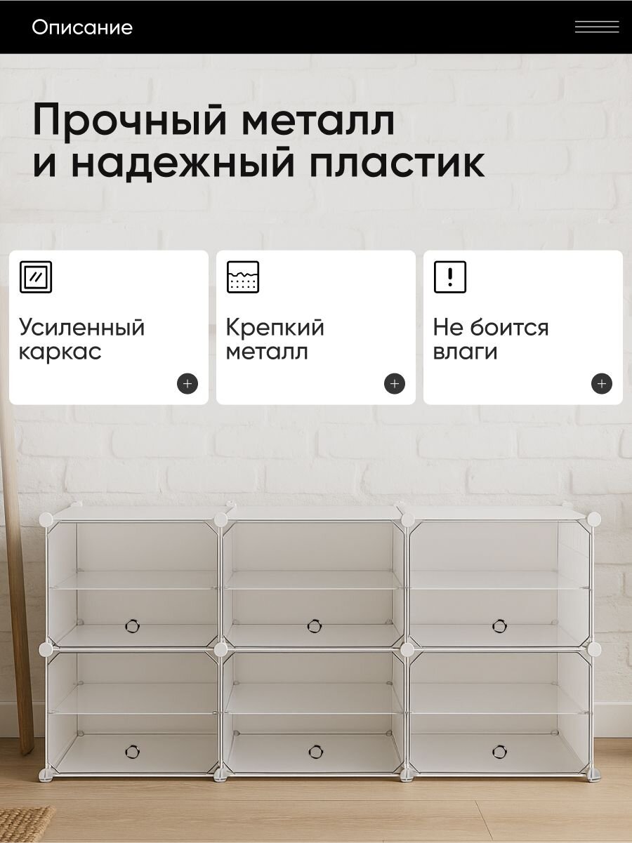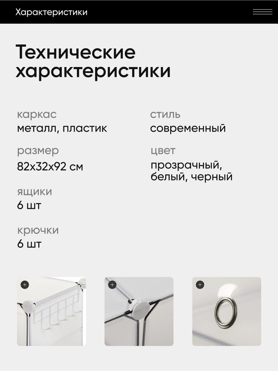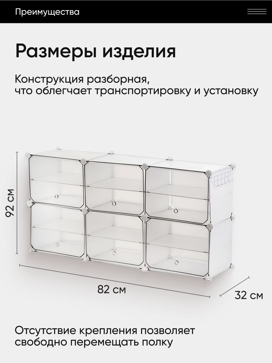 - Шесть ящиков и шесть крючков: обеспечивают много места для хранения обуви и аксессуаров.