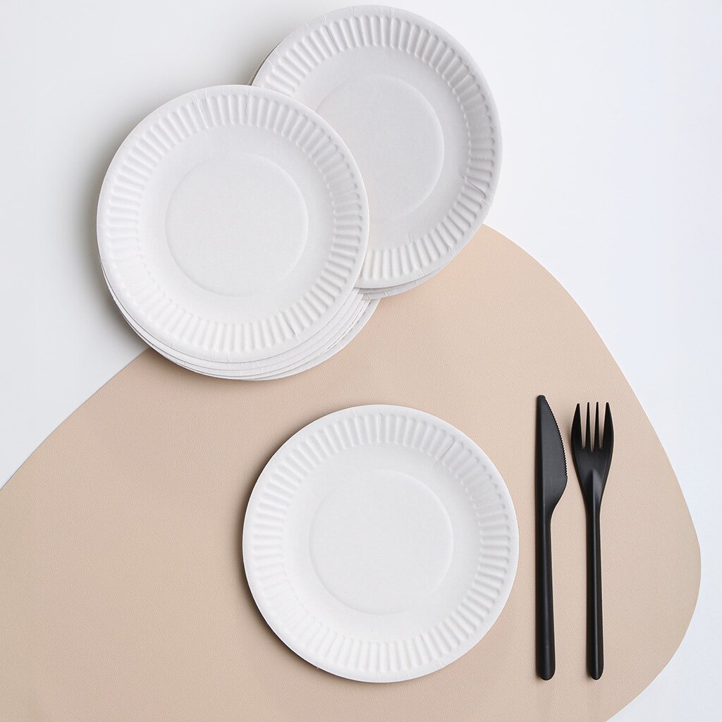Одноразовые тарелки Мистерия диаметром 170 мм — это практичный выбор для сервировки стола на пикнике, даче, детском дне рождения или семейном ужине. Картонная основа обеспечивает плотность и устойчивость, позволяя использовать тарелки как для закусок, так и для десертов. Благодаря белому цвету и лаконичному дизайну, посуда гармонично впишется в любую сервировку.