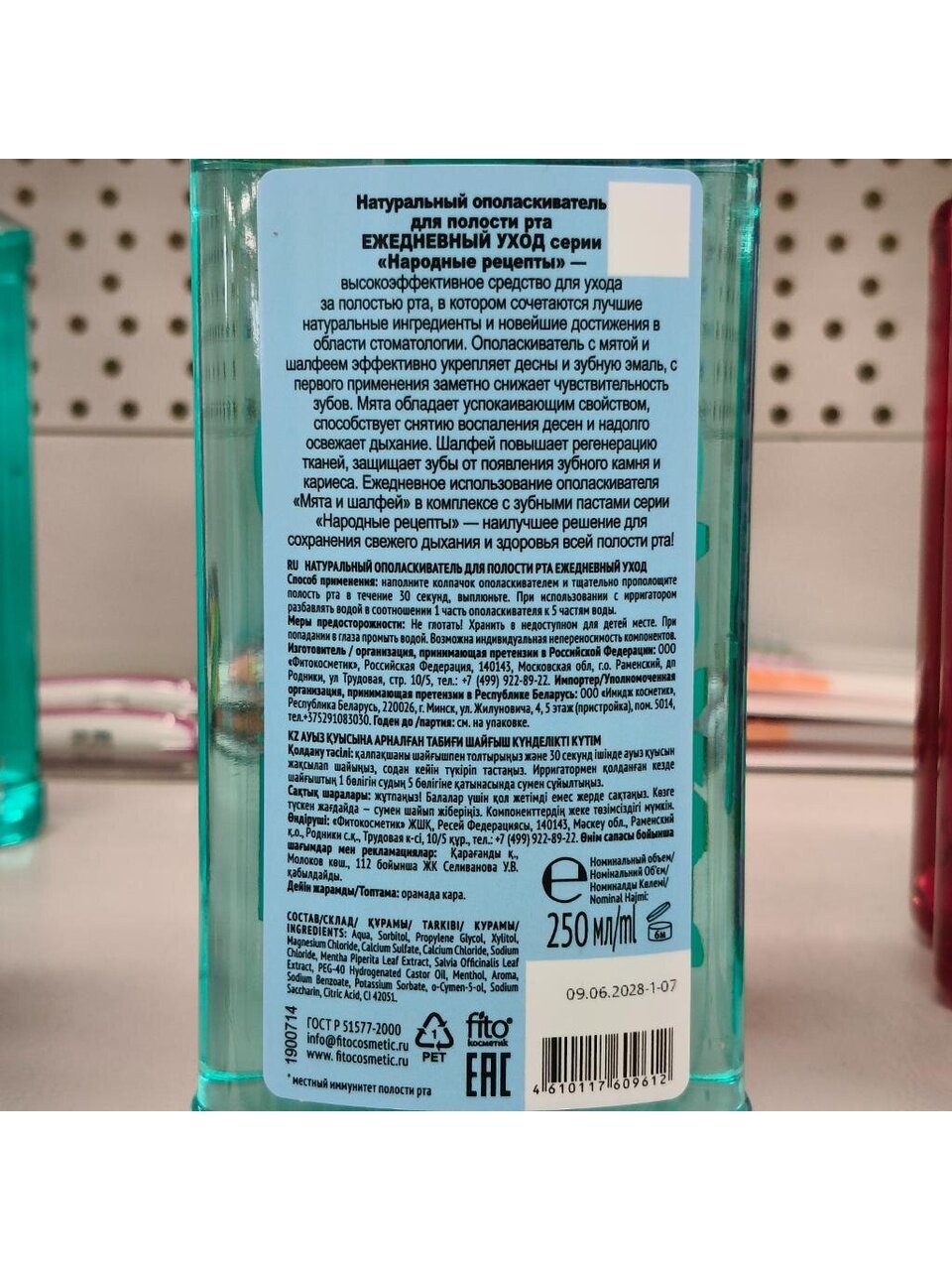 Вы можете приобрести «Ополаскиватель для полости рта Народные рецепты, Ежедневный уход, 250 мл» и другие товары в нашем интернет-магазине в Тамбове по низким ценам и с бесплатным самовывозом.