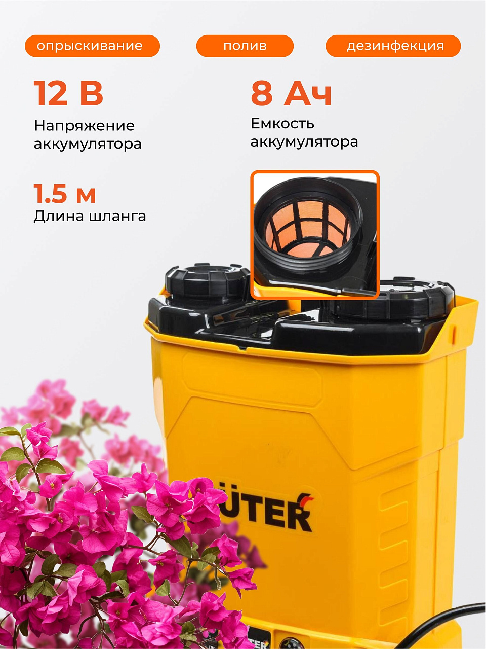 - Объем бака для распыления: 16 л;