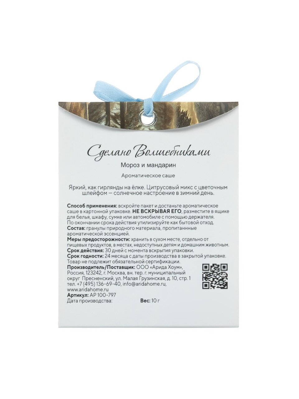 Добавьте в корзину аромасаше Arida Home «Мороз и мандарин» и создайте атмосферу праздника по выгодной цене. Гарантия свежести и оригинальный аромат — отличный выбор для себя и в подарок.