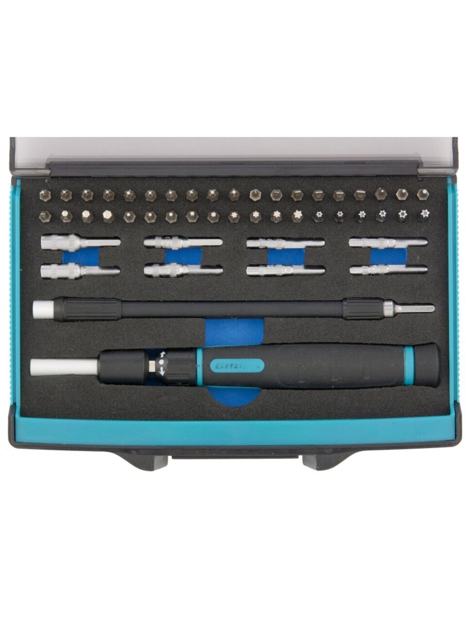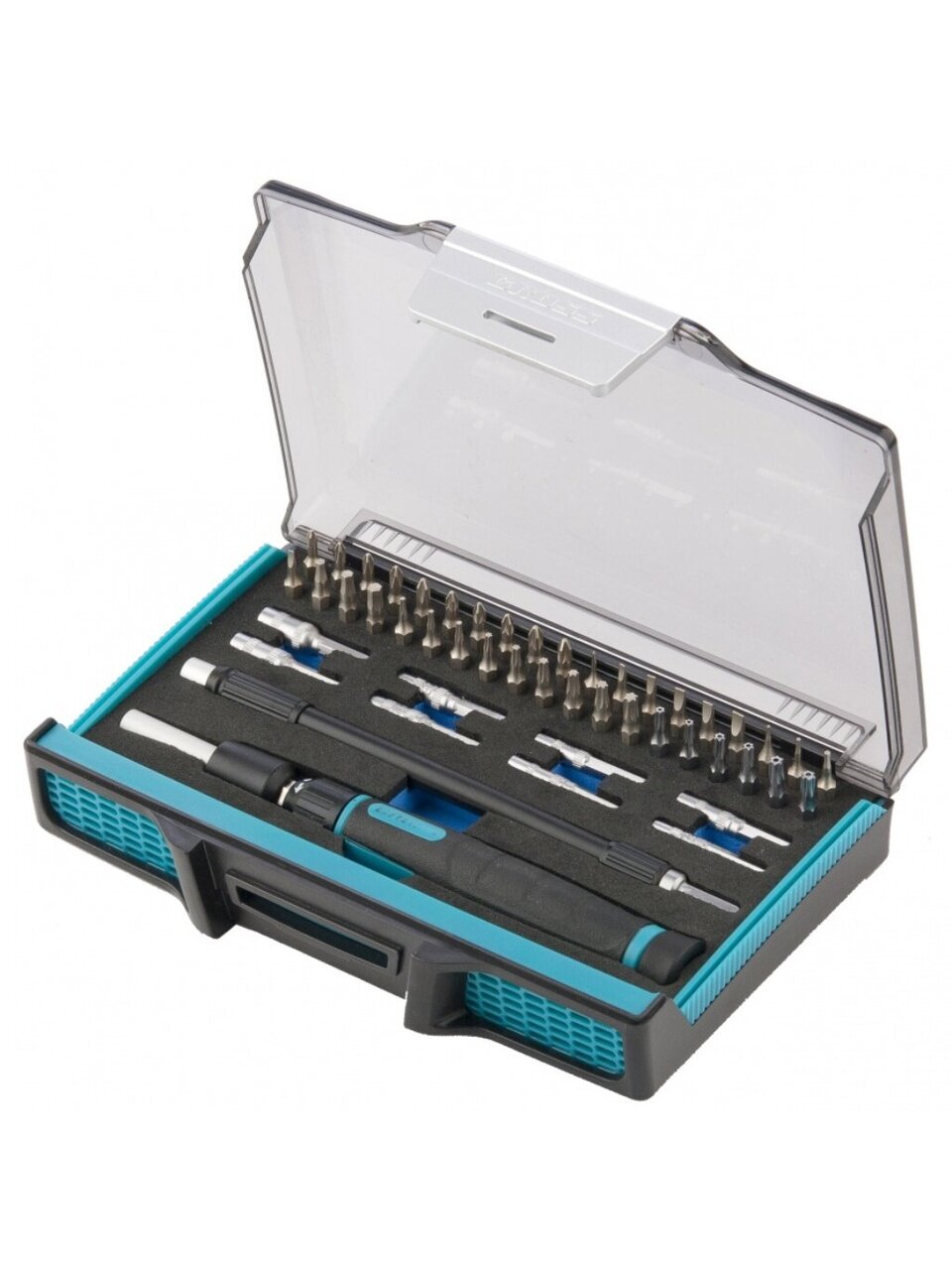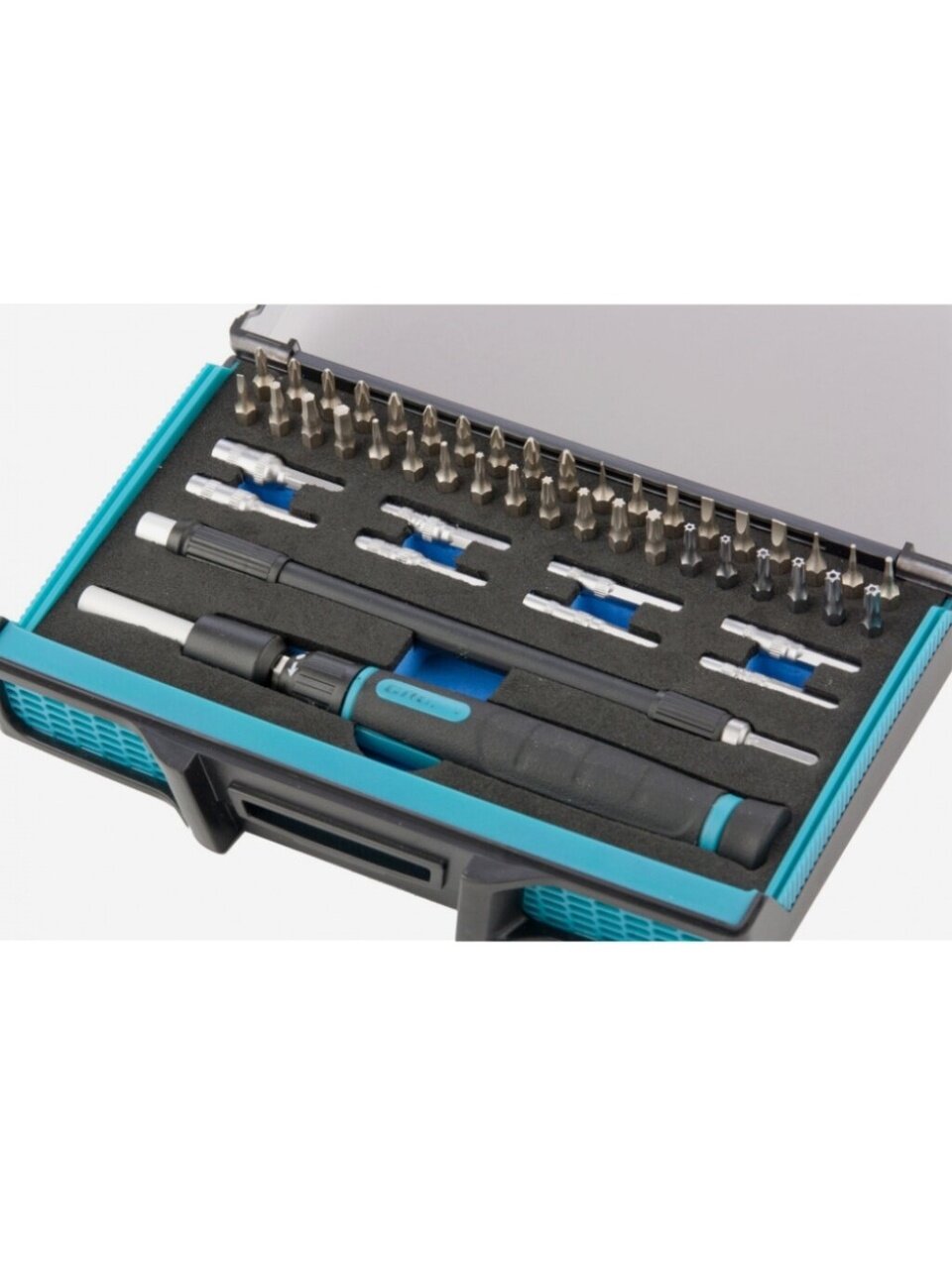 - набор включает насадки различных типов: SL, PH, PZ, TORX, HEX, что обеспечивает универсальность применения;