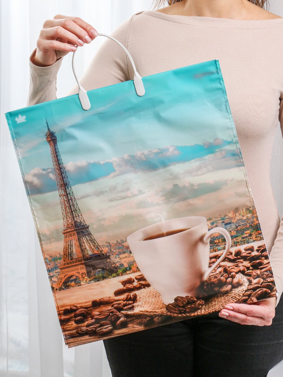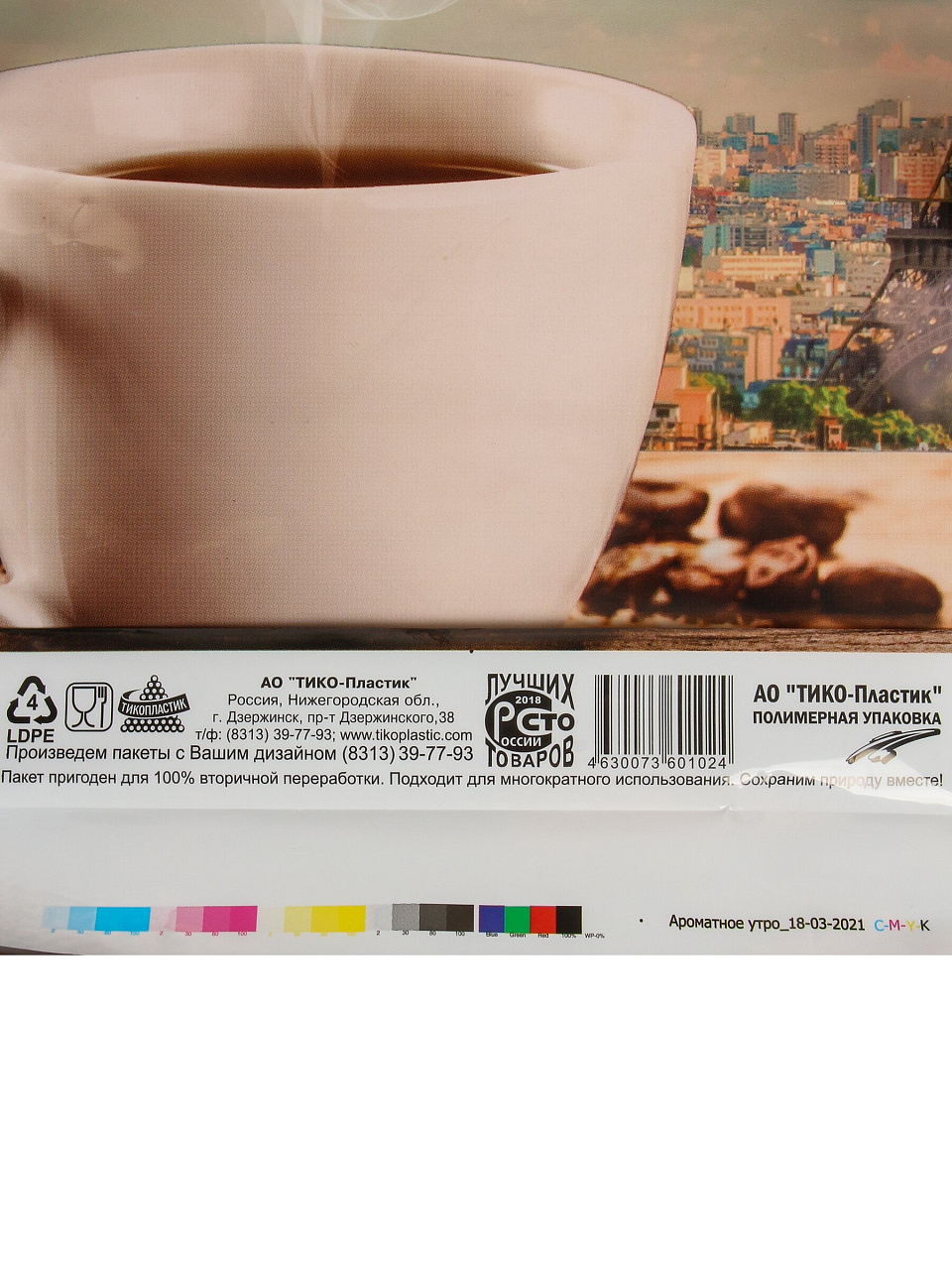 Пакет 40х44 см, 100 мкм, с пластиковыми ручками, Ароматное утро, Фотопечать, н00179181
