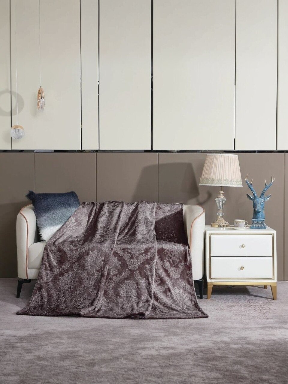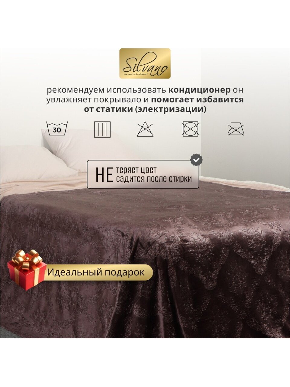 Плед 2-спальный Silvano Fresco 180х200 см: мягкий велсофт жаккард, стильный коричневый цвет, уют и тепло по доступной цене для дома и дачи.