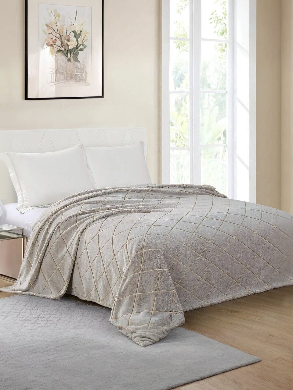 - Мягкость и плюшевый комфорт: велсофт жаккард с коротким ворсом дарит нежные тактильные ощущения, выделяется среди других пледов.