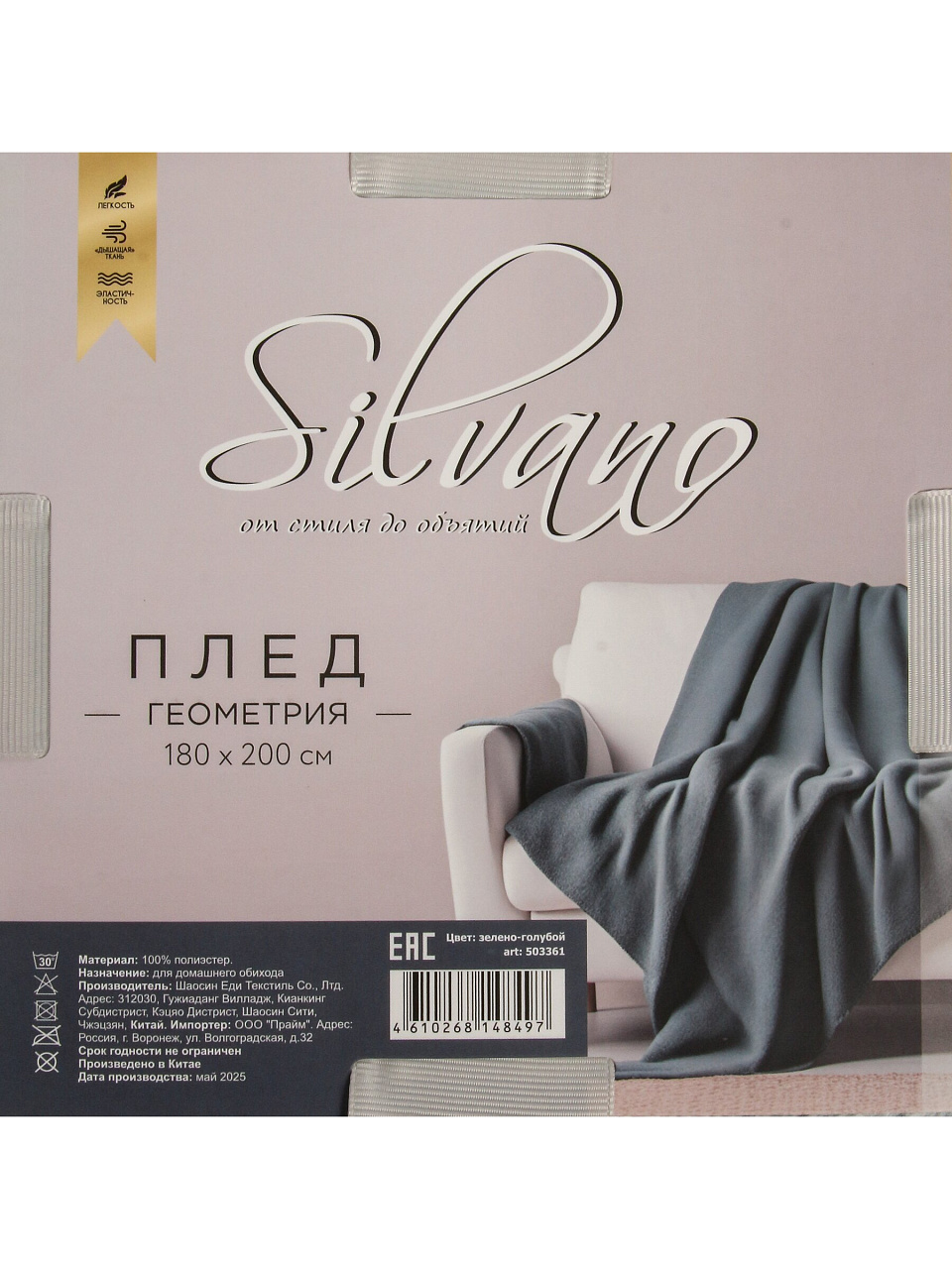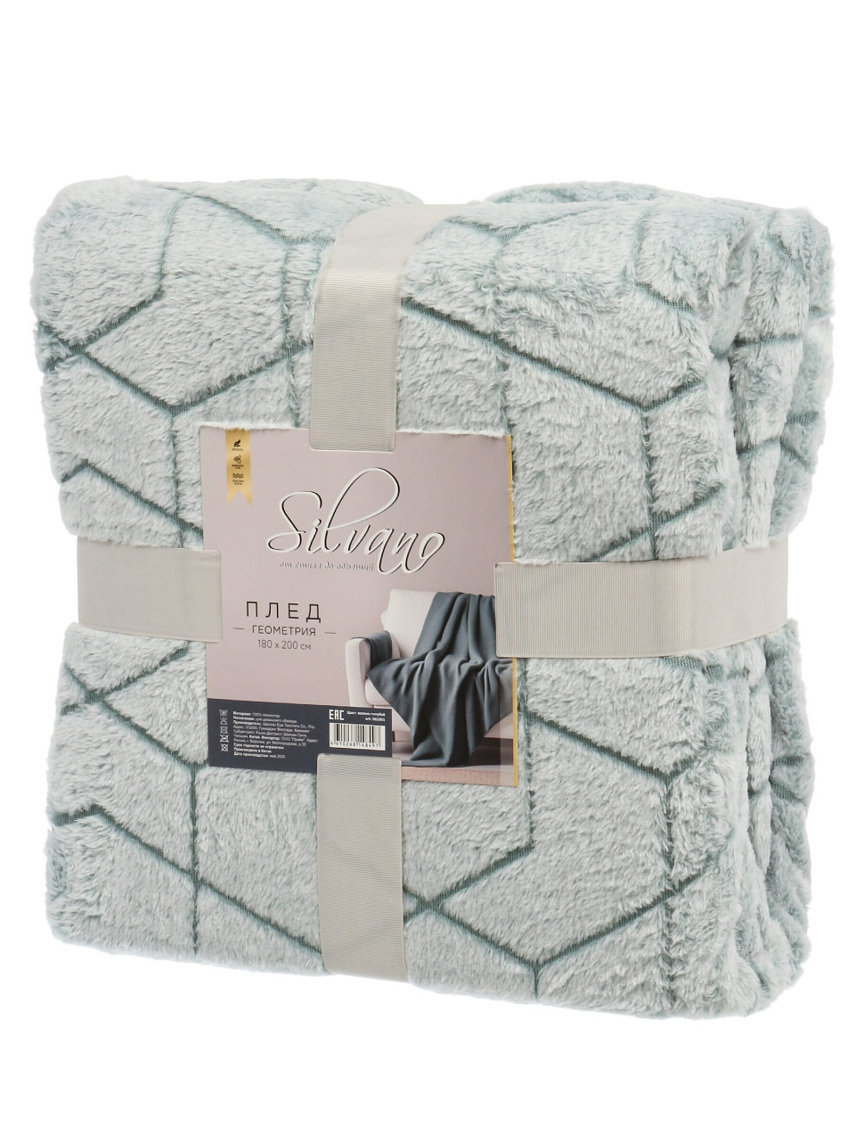 Плед 180*200 см, микрофибра, 100%пэ, 280г, Silvano, Геометрия, зелено-голубой