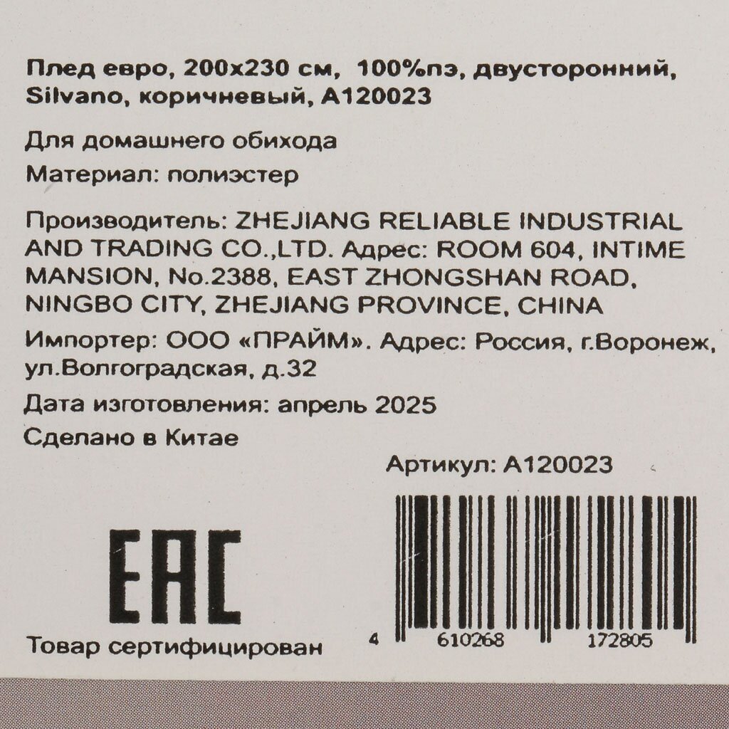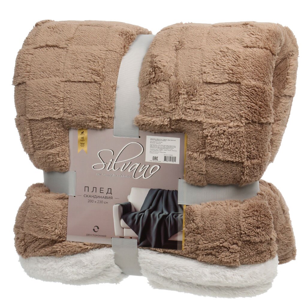 Плед евро, 200х230 см, 100%пэ, двусторонний, Silvano, коричневый, A120023