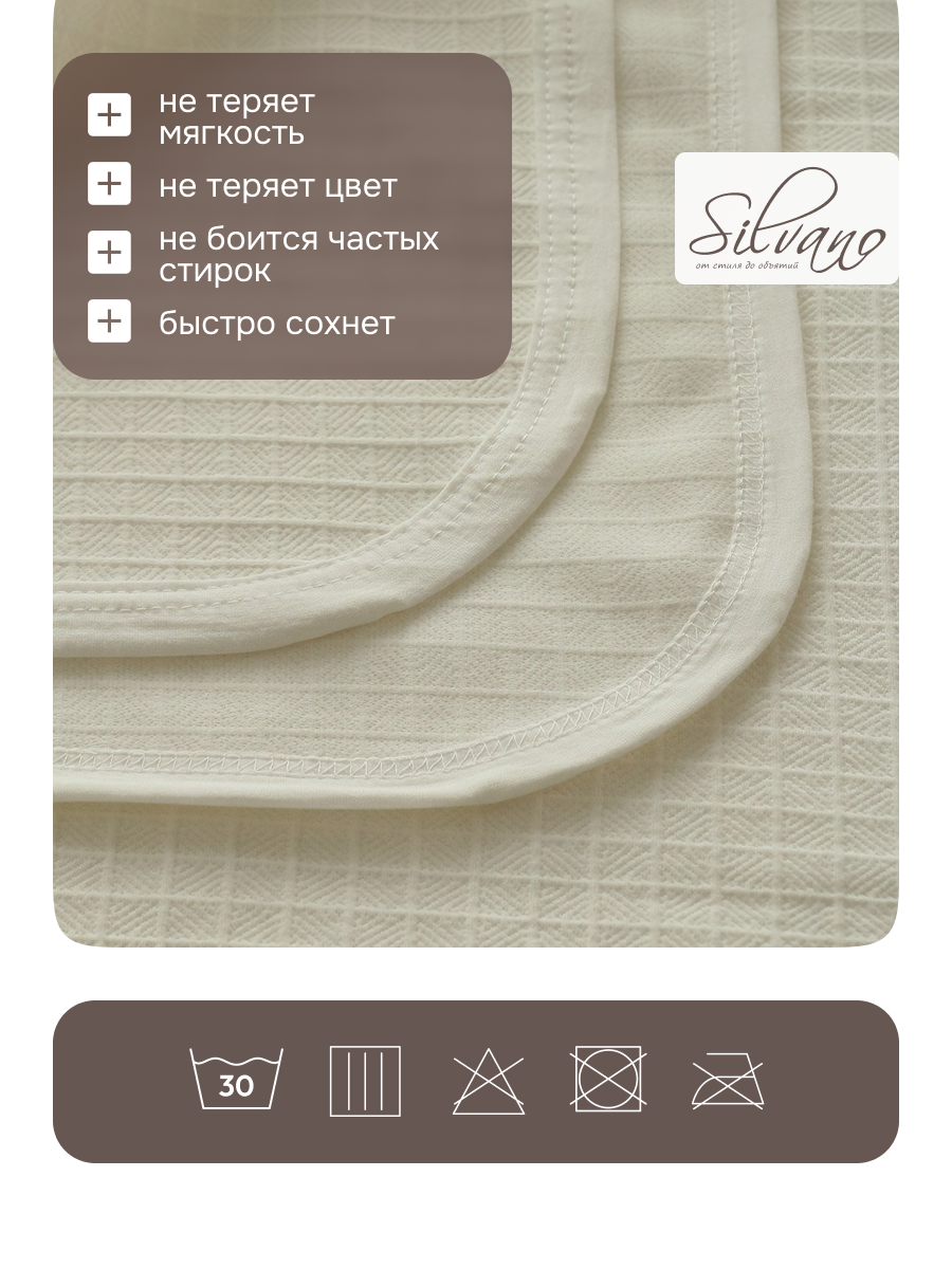 Многие спрашивают: «Как выбрать плед для дома?» или «Чем отличается плед из полиэстера от хлопкового?». Модель Silvano Палермо выполнена из 100% полиэстера — этот материал не скатывается, не теряет форму после стирки и быстро сохнет. В отличие от натуральных тканей, он менее подвержен выцветанию и легче в уходе, что особенно важно для активного использования. Плед не стеганый, без ворса, поэтому подходит даже для аллергиков.