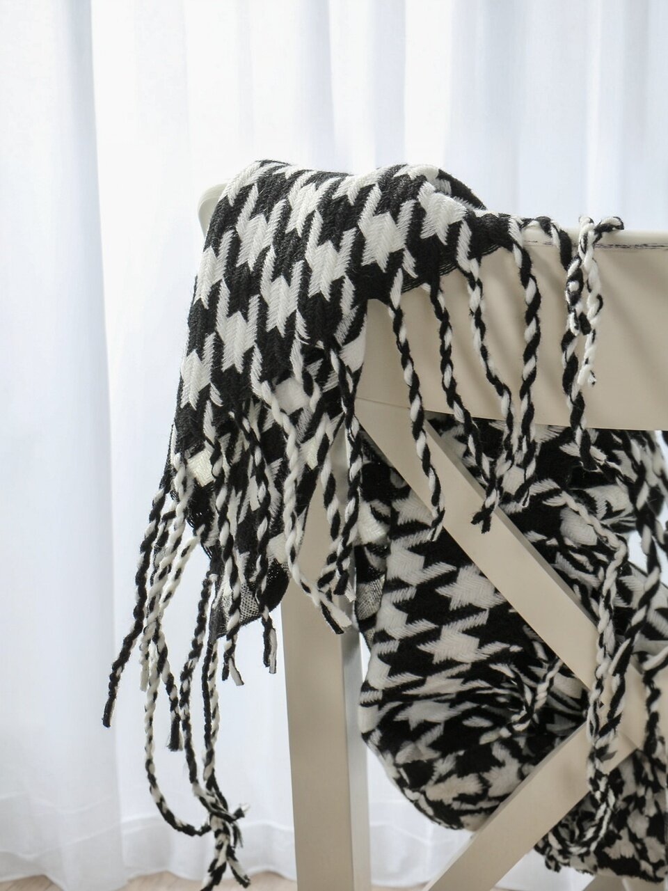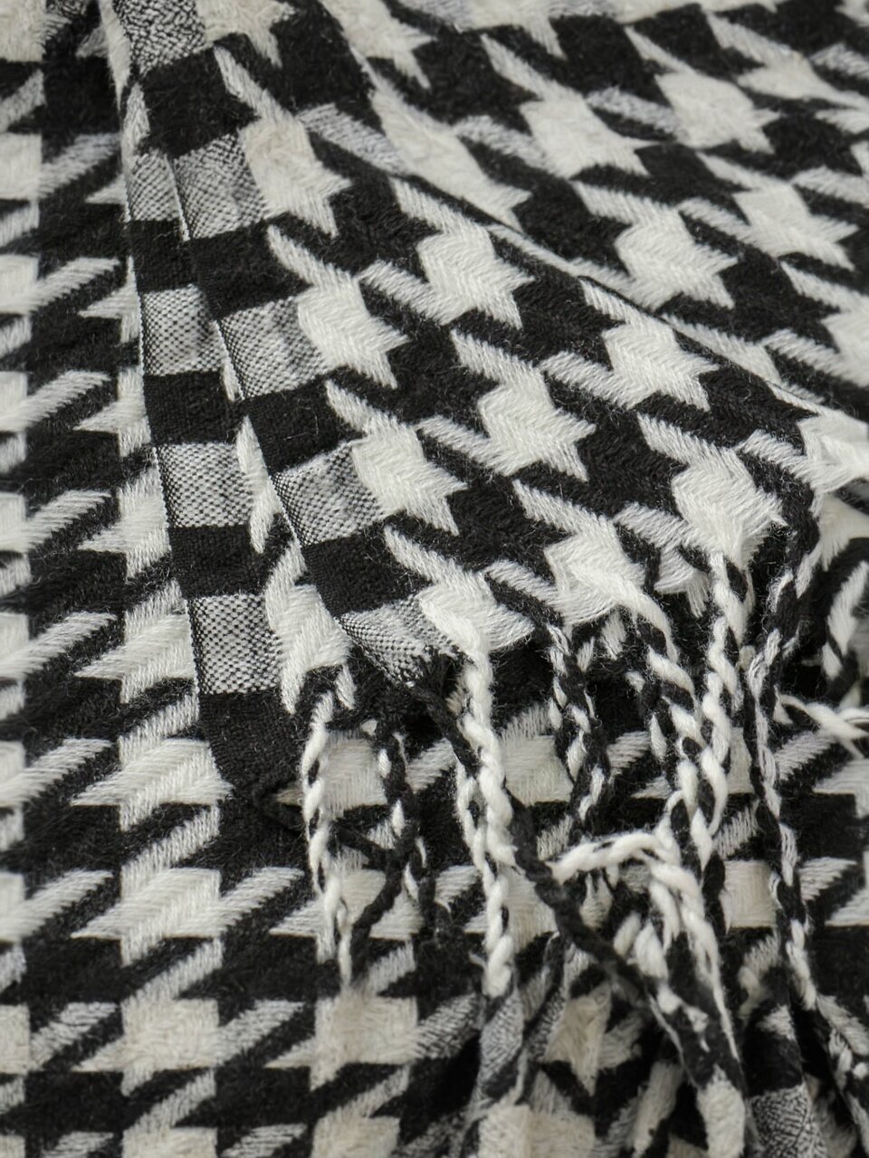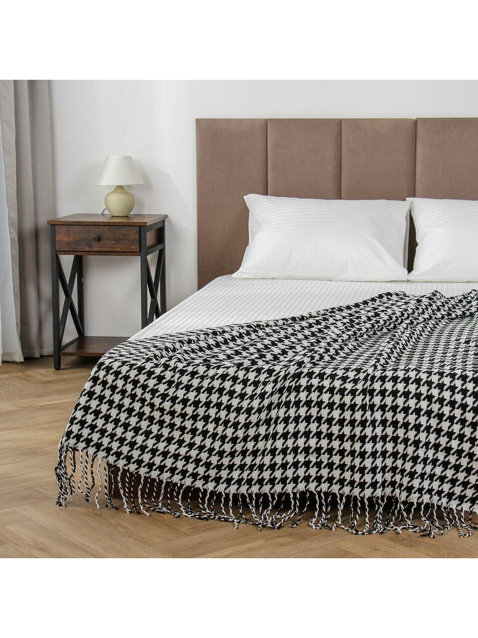 - Уникальный дизайн: модный вязаный плед с рисунком "гусиная лапка" — эффектный акцент в интерьере.