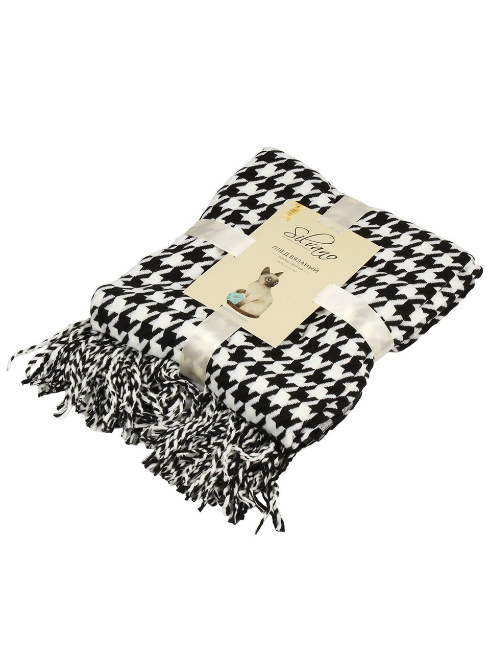 Плед 1.5-спальный Silvano "Теплые объятия" 130х180 см — уют и стиль для вашего дома: вязаная фактура, трендовый узор "гусиная лапка", доступная цена.