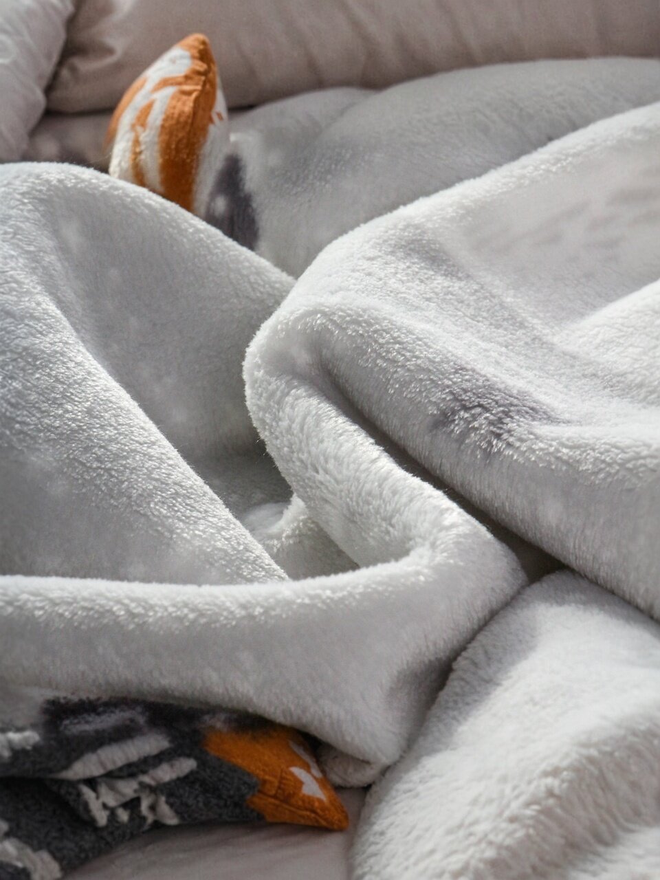 Рекомендуется машинная стирка при 40°C без отбеливателей, быстрая сушка, плед не требует глажки и сохраняет мягкость даже после многократных стирок.