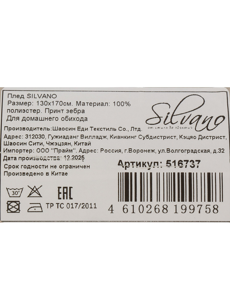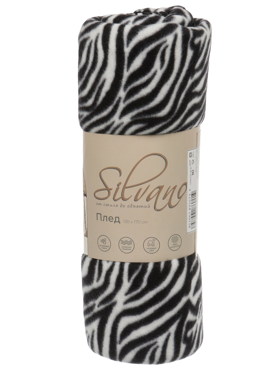 Плед 1.5-спальный Silvano 130х170 см, флис, зебра — уют и стиль недорого: тёплый, лёгкий, двусторонний, подходит для дома, дачи и автомобиля.